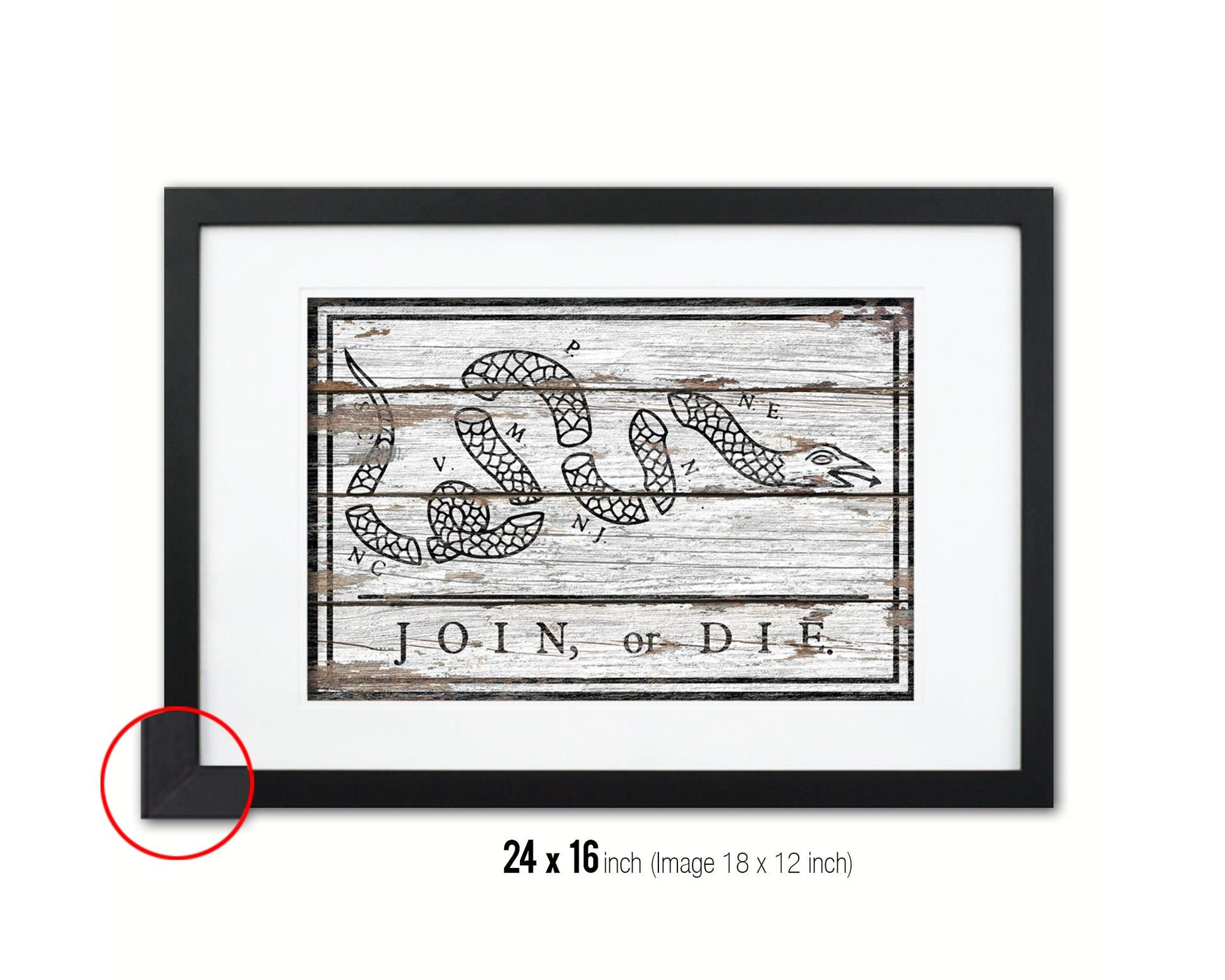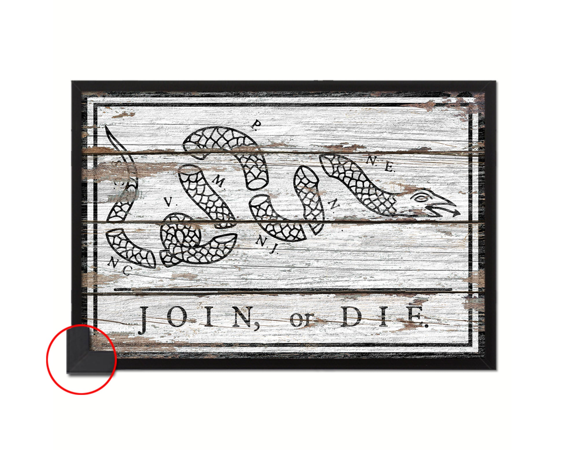 US Join or Die Snake Colonial Revolutionary War Wood Rustic Flag Framed Print Art