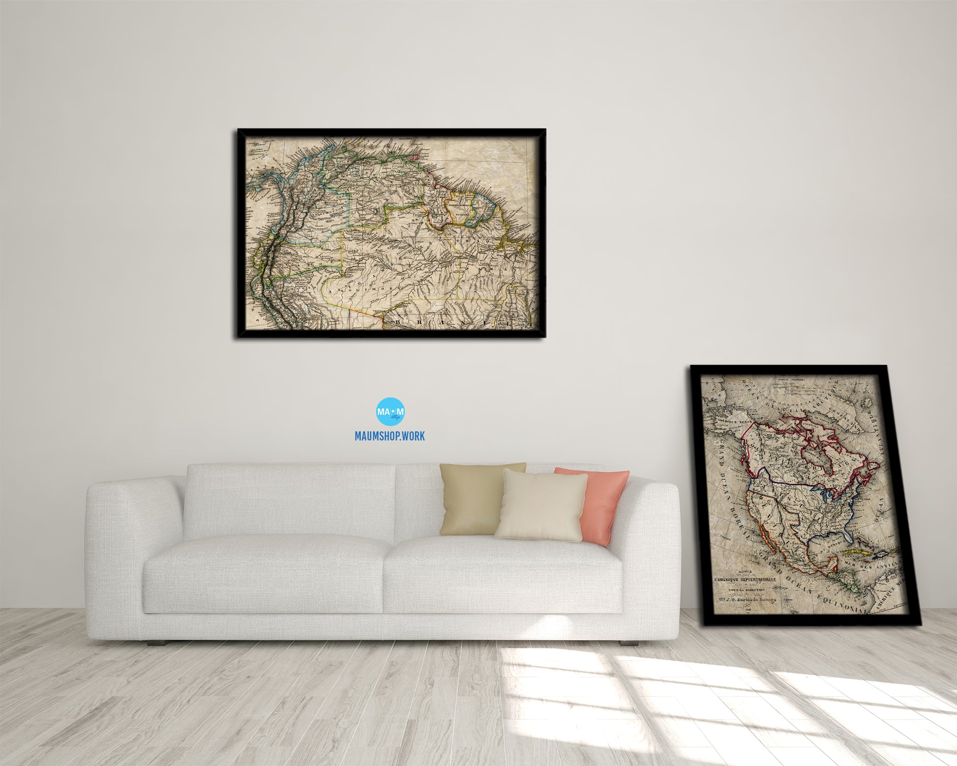 Venezuela Colombia Brazil Historical Map Framed Print Art Wall Decor Gifts