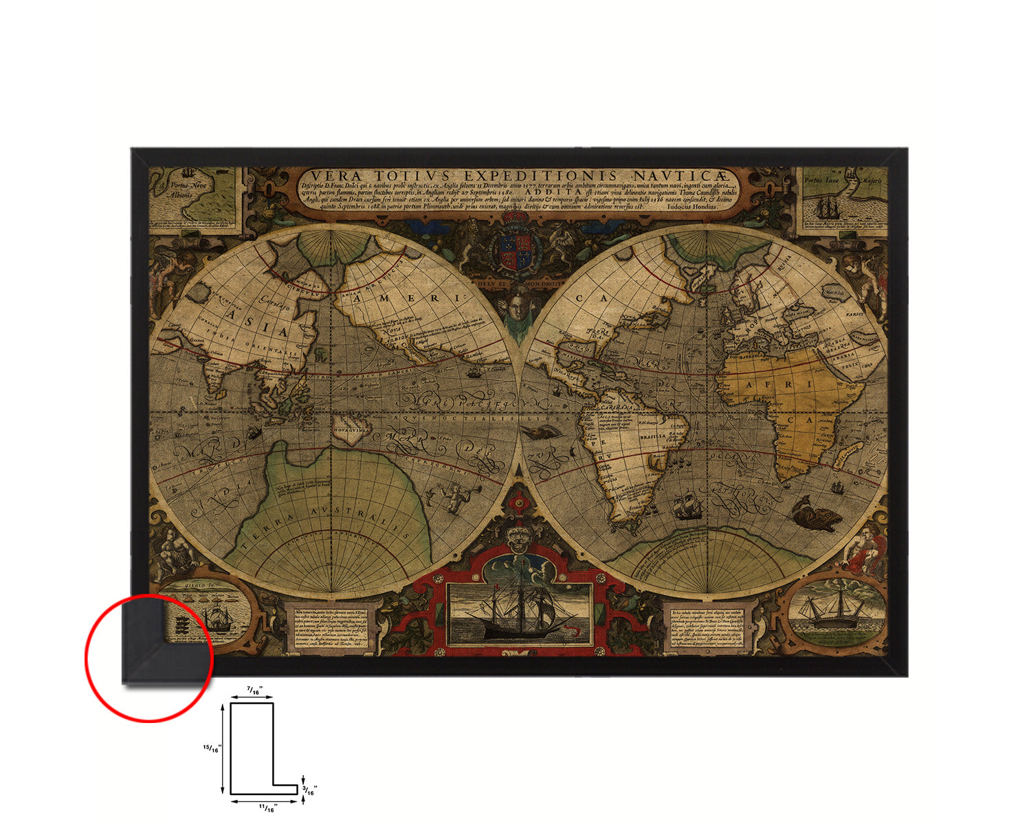 Vera Totius Expeditionis Nautica Double Hemisphere World Historical Map Framed Print Art Gifts