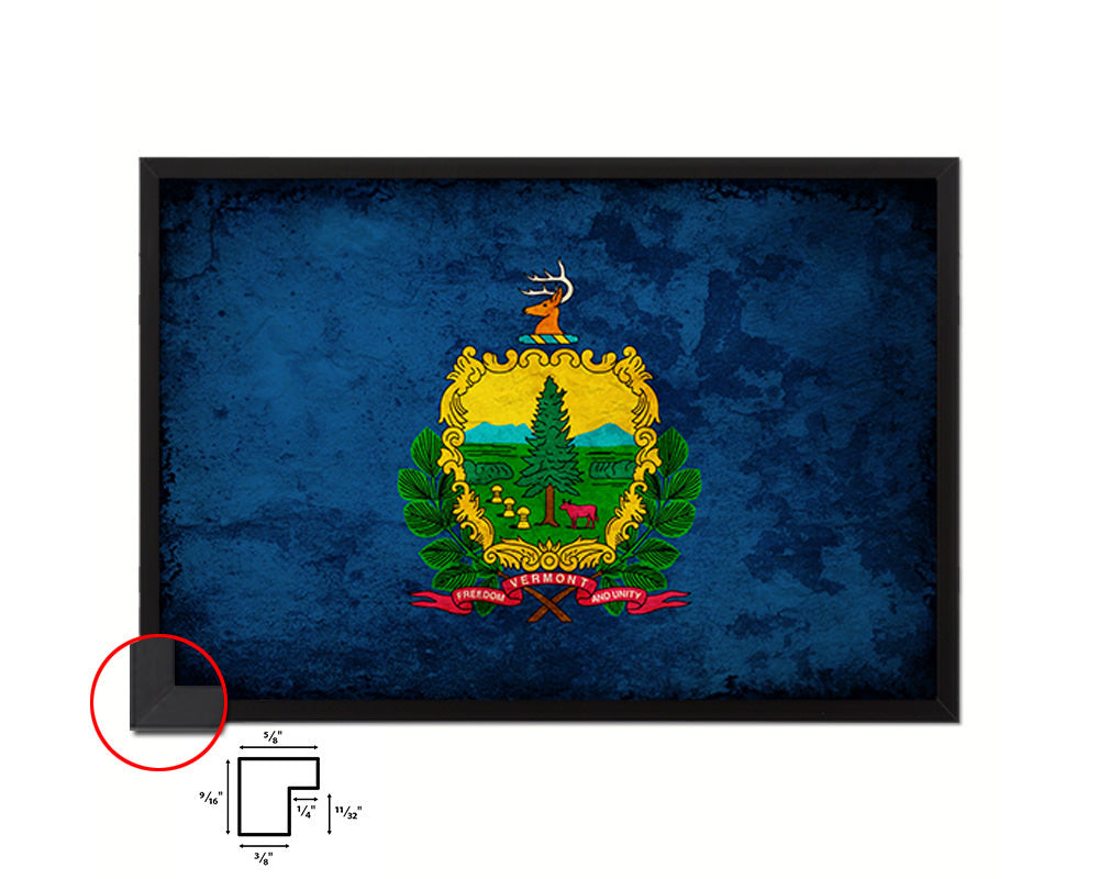 Vermont State Vintage Flag Wood Framed Paper Print Wall Art Decor Gifts