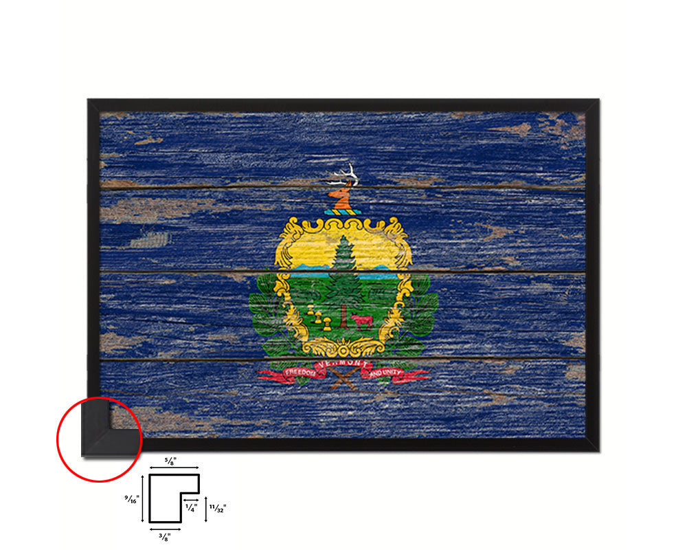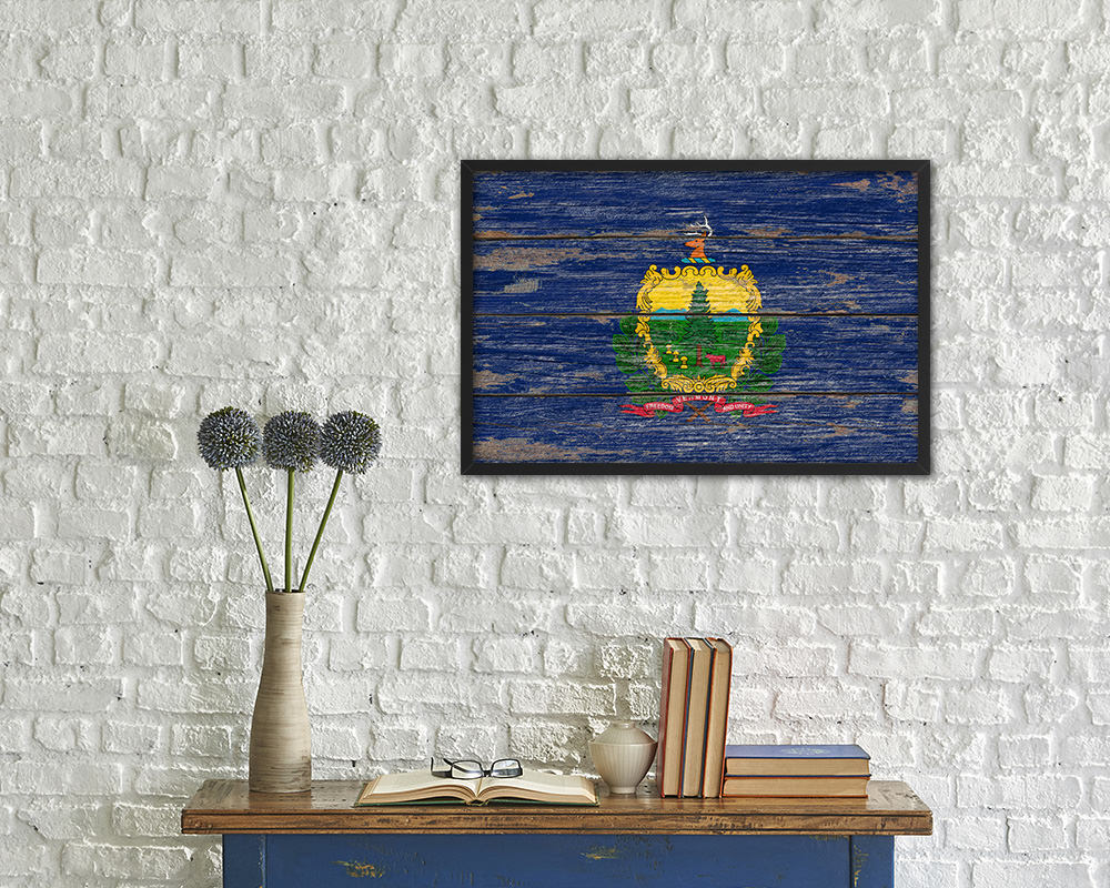 Vermont State Rustic Flag Wood Framed Paper Prints Wall Art Decor Gifts