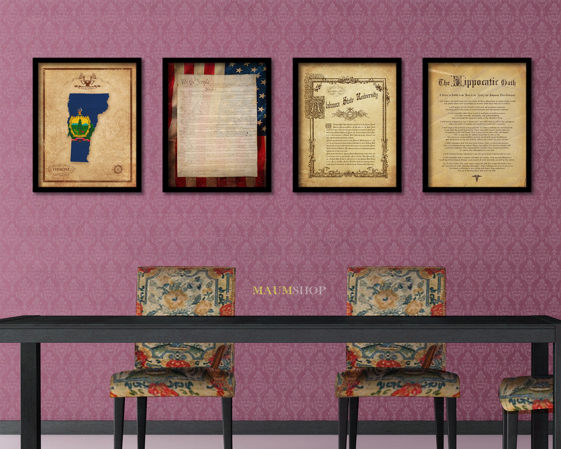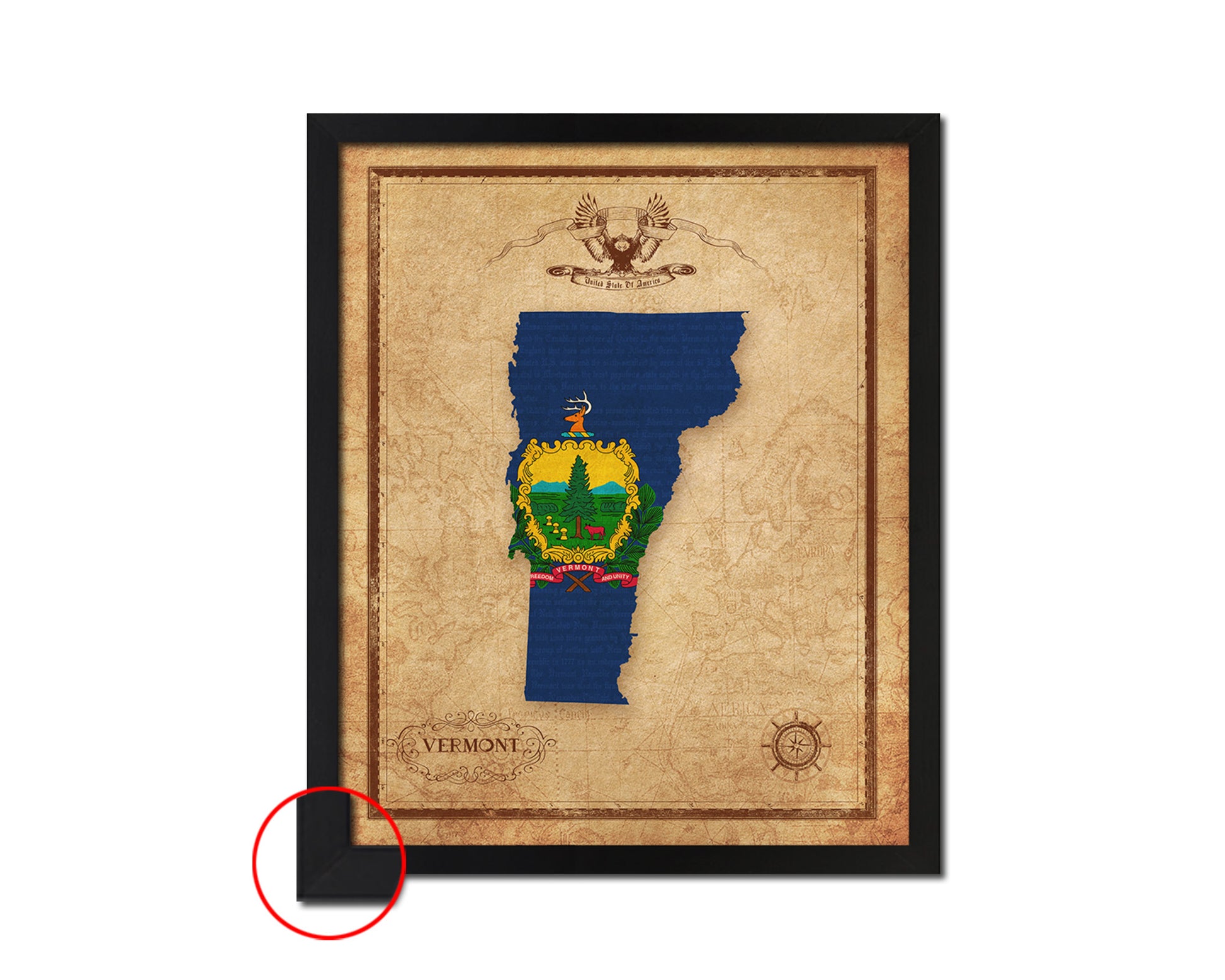 Vermont State Vintage Map Wood Framed Paper Print Wall Art Decor Gifts