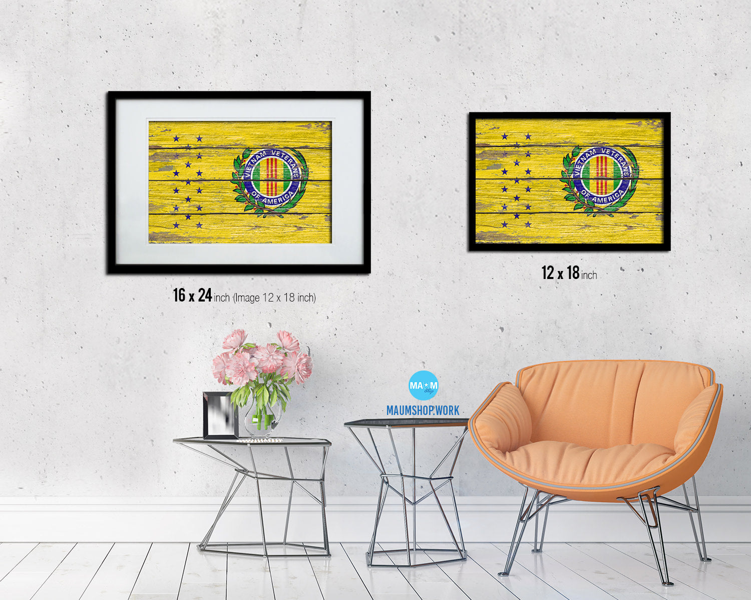 Vietnam War American Veterans Wood Rustic Flag Wood Framed Print Wall Art Decor Gifts