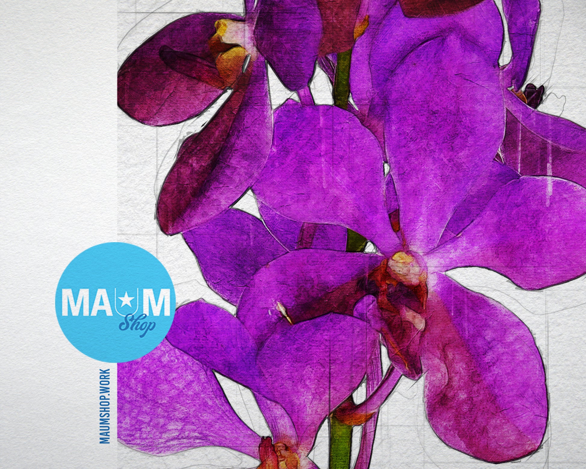 Violet Orchid Sketch Plants Art Wood Framed Print Wall Decor Gifts