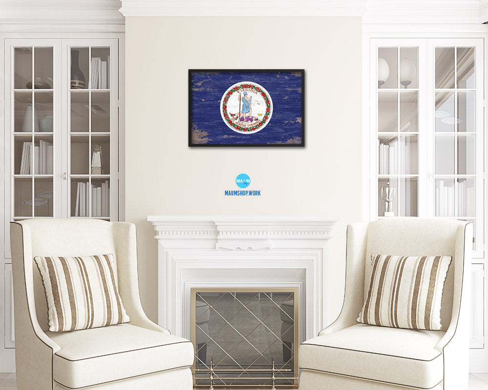 Virginia State Shabby Chic Flag Wood Framed Paper Print Wall Art Decor Gifts