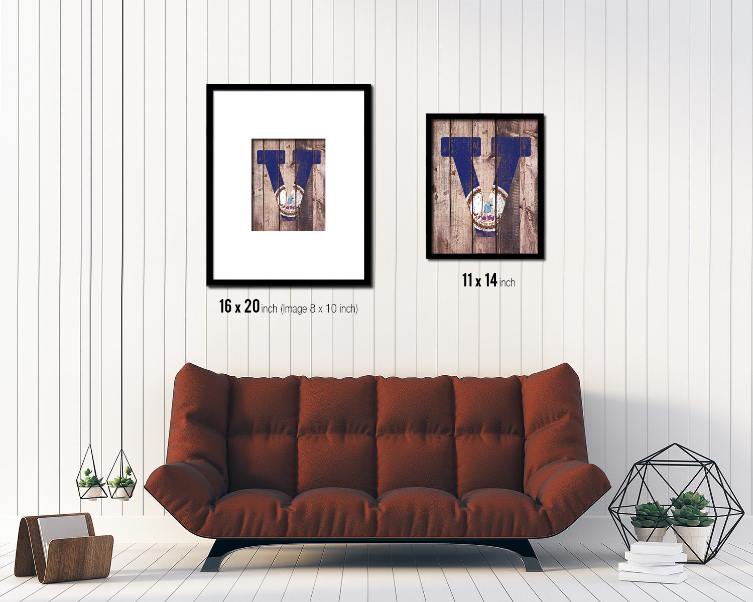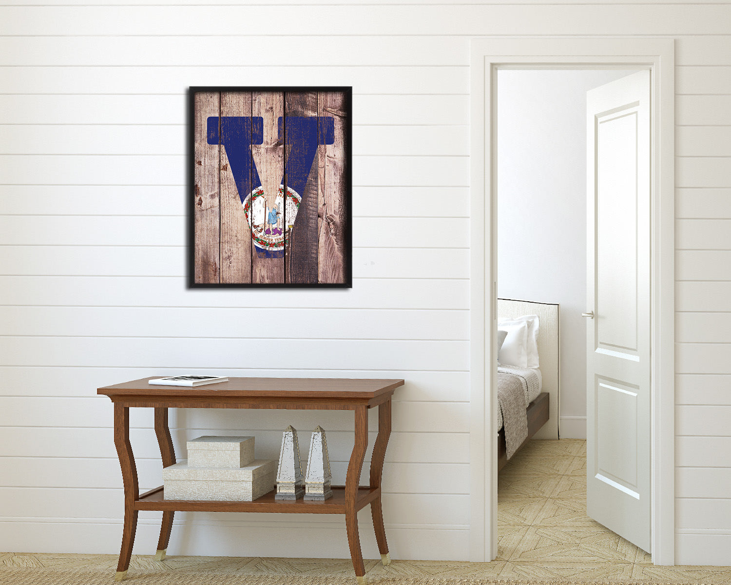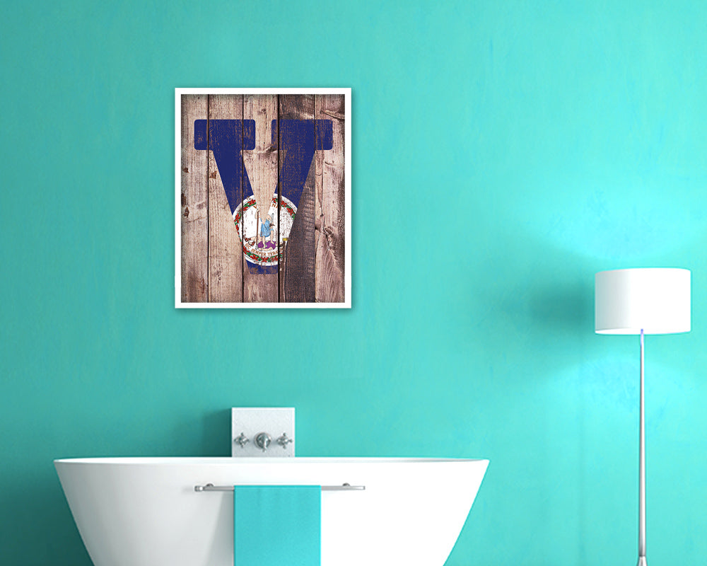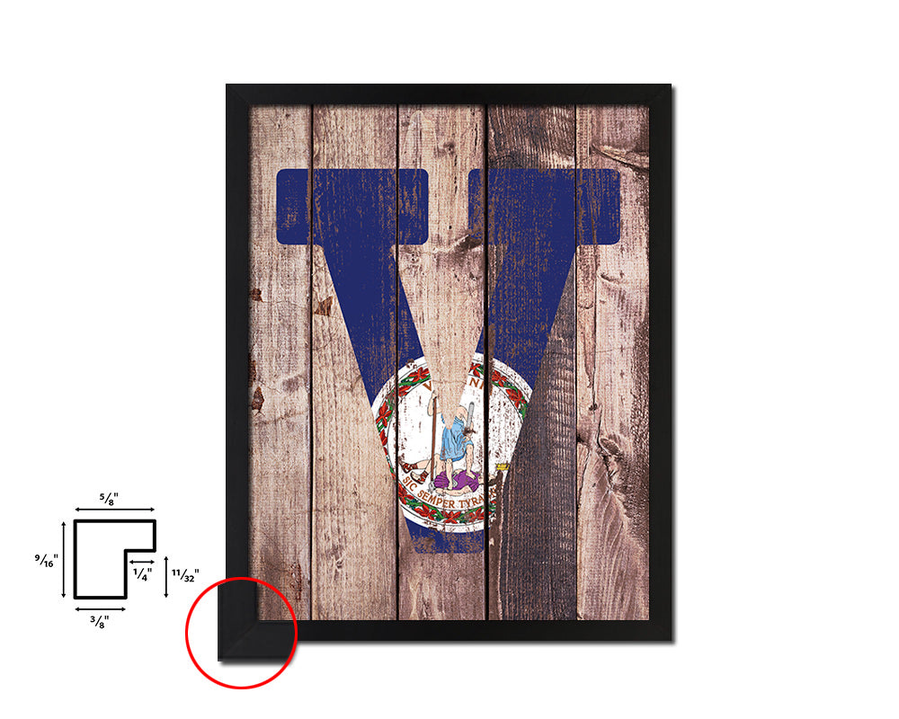 Virginia State Initial Flag Wood Framed Paper Print Decor Wall Art Gifts, Wood