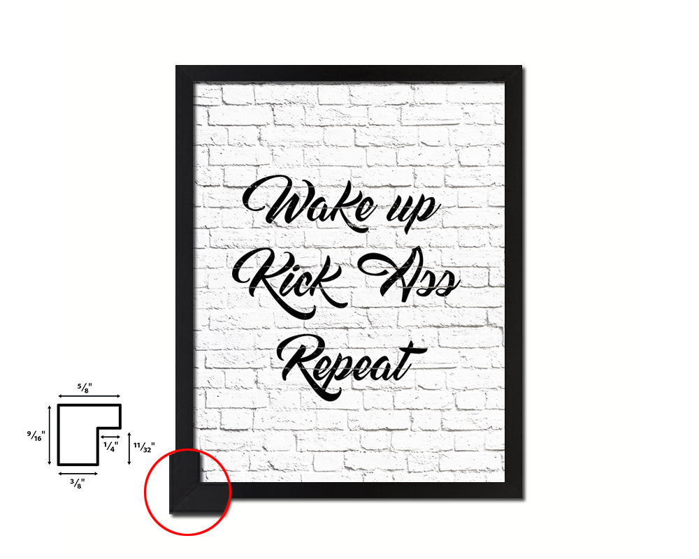 Wake up Kick ass Repeat Quote Framed Print Home Decor Wall Art Gifts