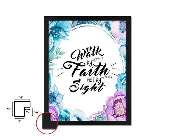 Walk by faith not by sight Quote Boho Flower Framed Print Wall Decor Art