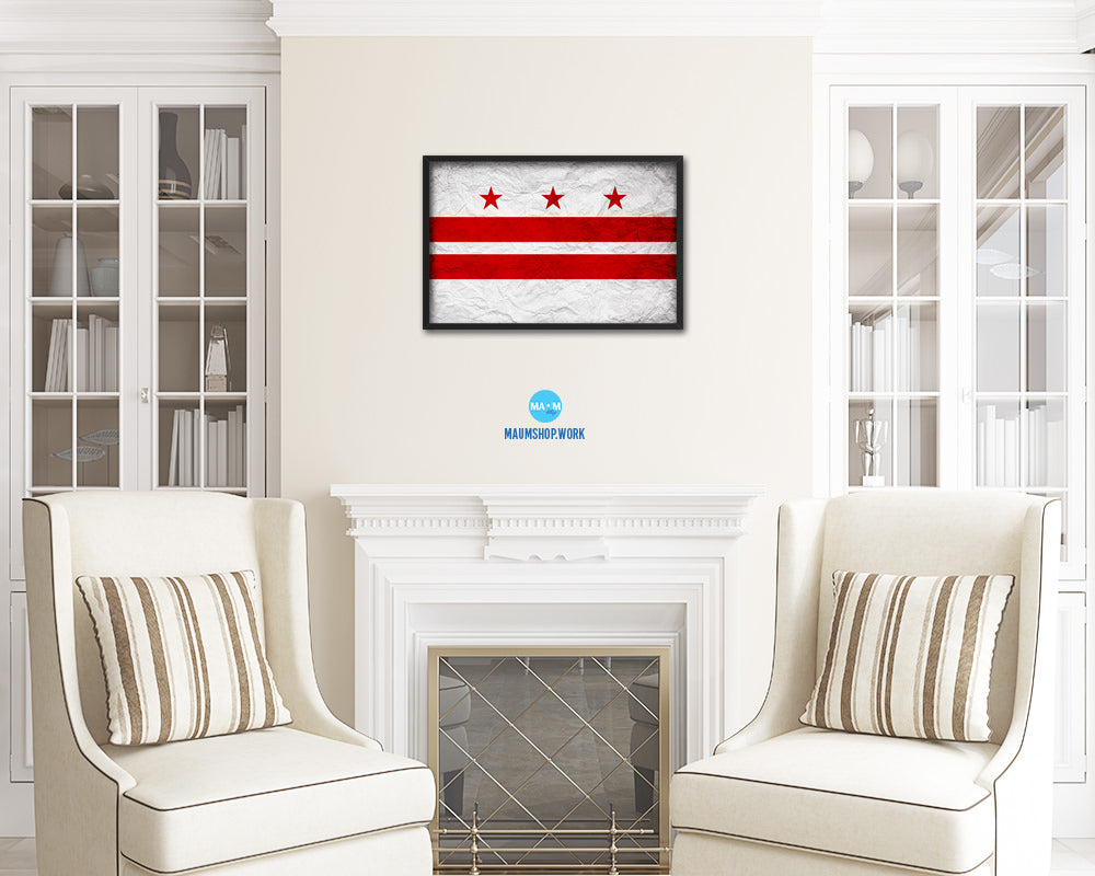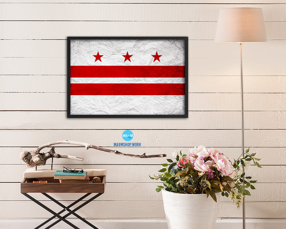 Washington DC Vintage Flag Wood Framed Prints Decor Wall Art Gifts