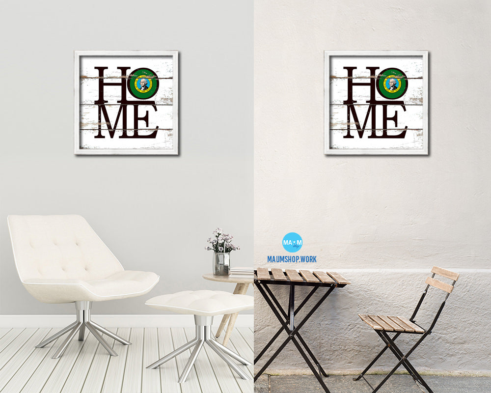 Washington State Flag Home Sign Framed Print Decor Wall Art Gifts