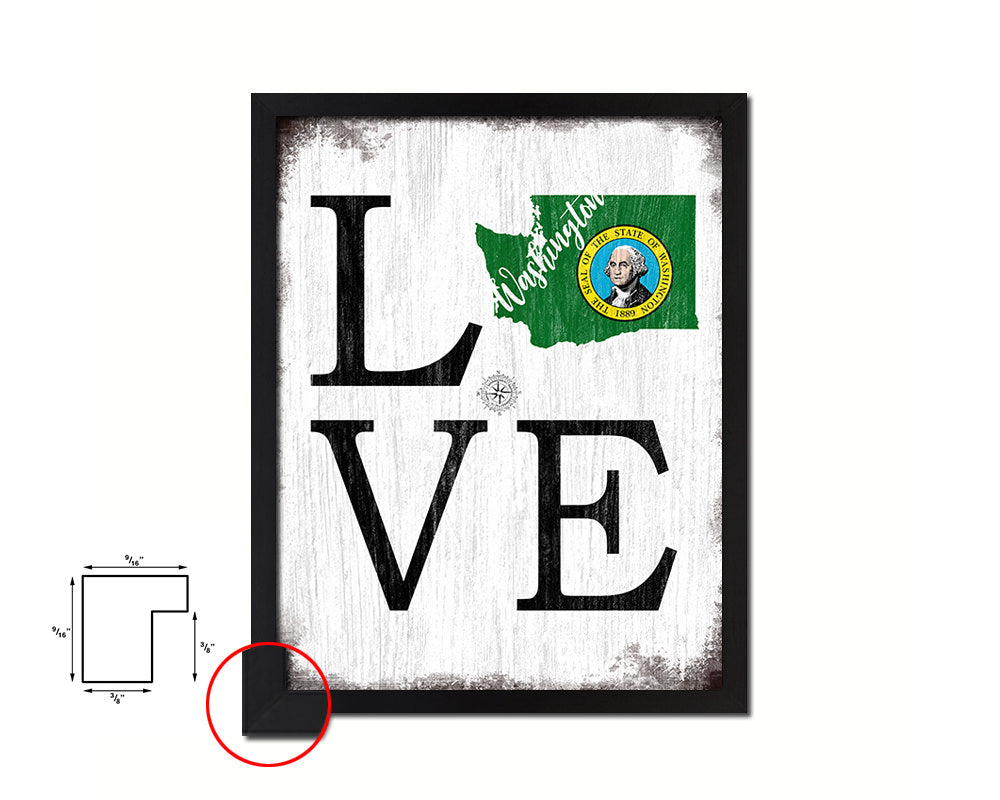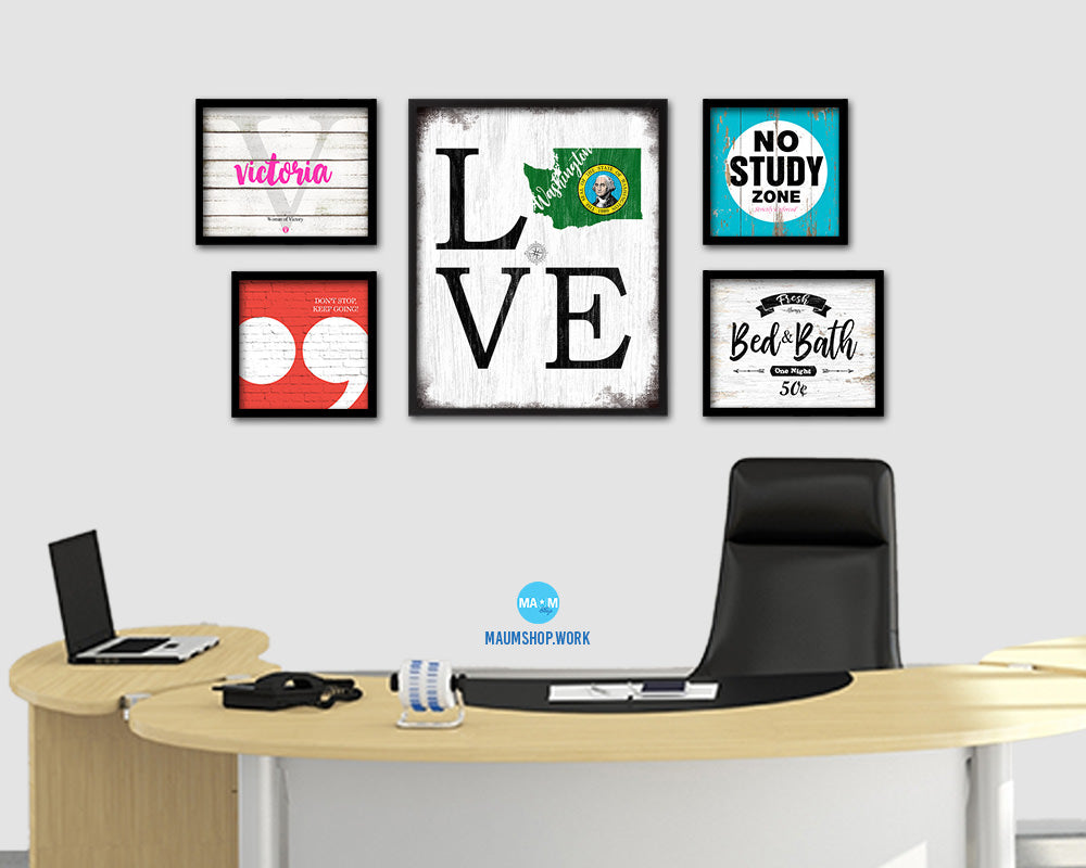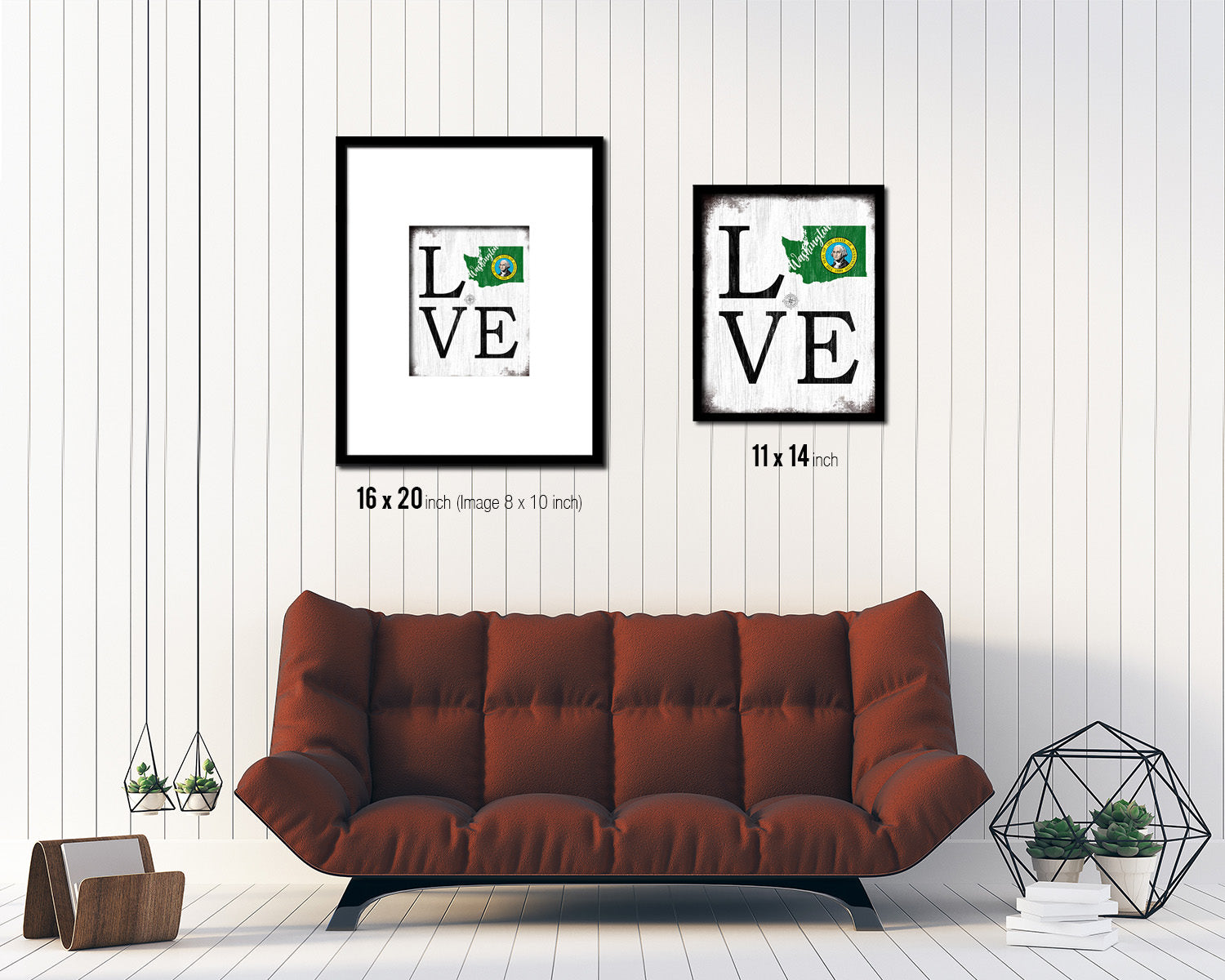 Washington Shabby Chic Love Sign Wood Framed Paper Print Decor Wall Art Gifts