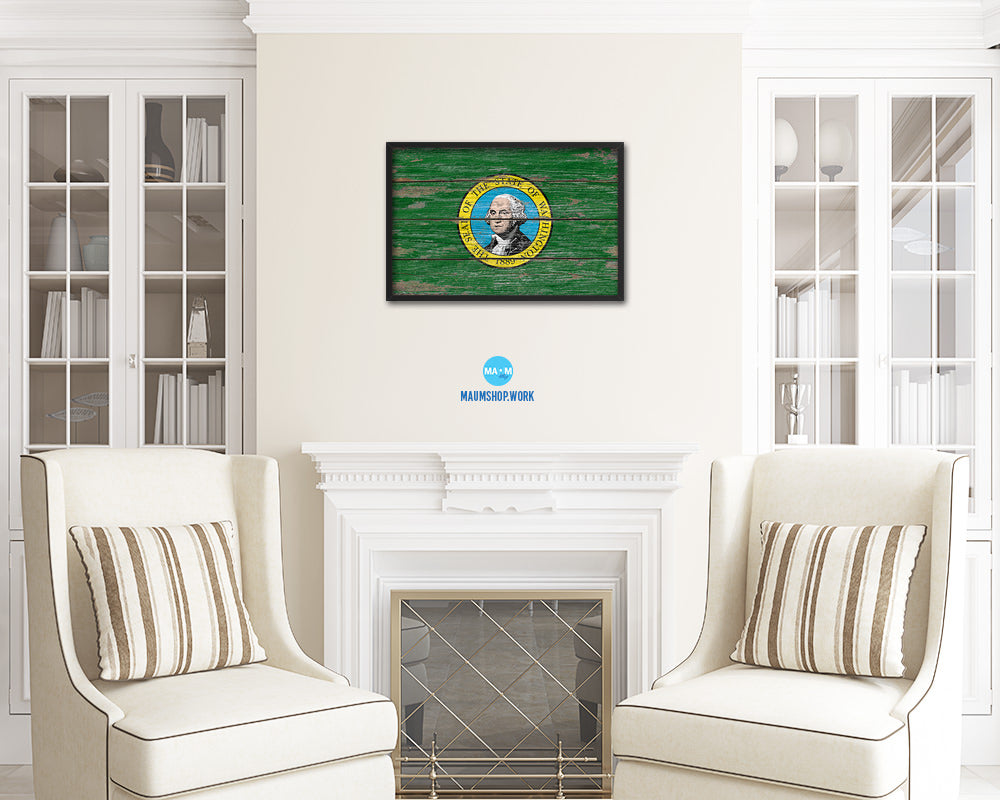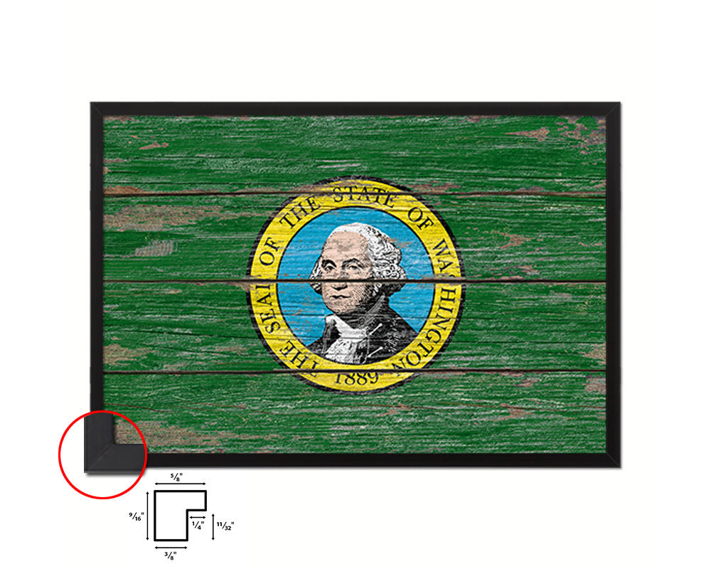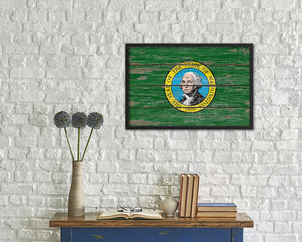 Washington State Rustic Flag Wood Framed Paper Prints Wall Art Decor Gifts