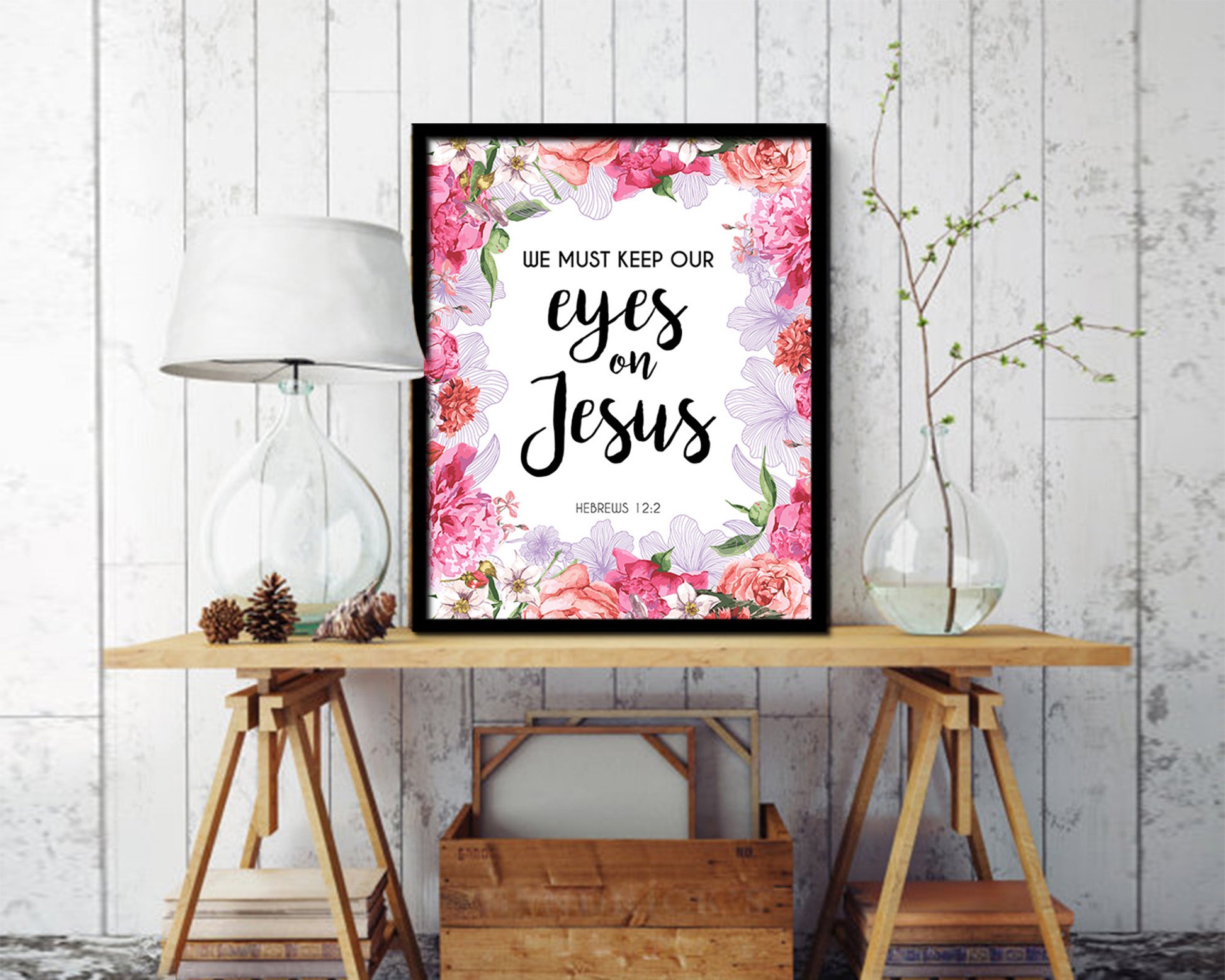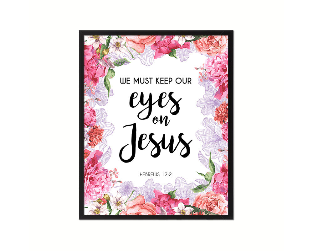 We must keep our eyes on Jesus, Hebrews 12:2 Quote Framed Print Home Decor Wall Art Gifts