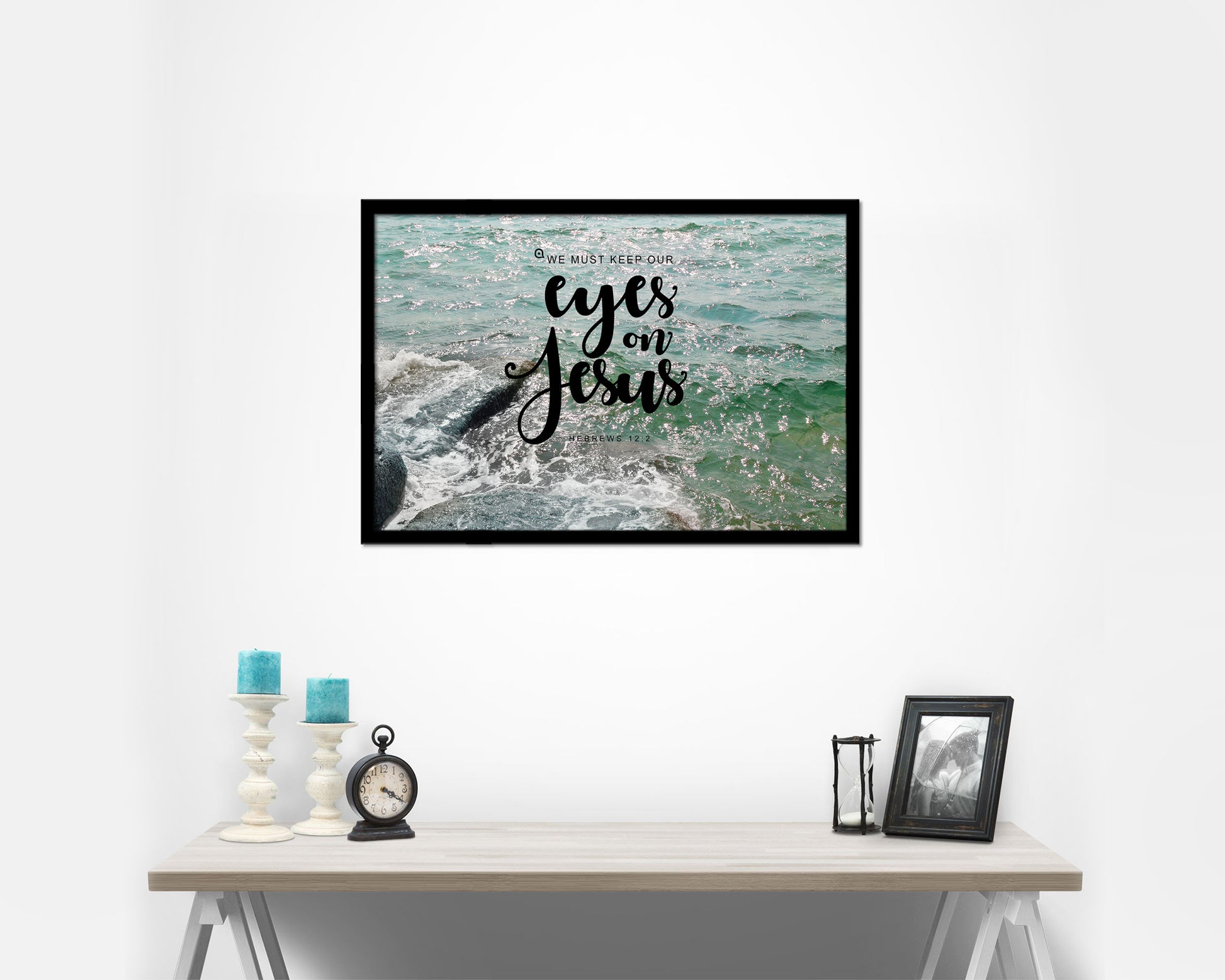 We must keep our eyes on Jesus, Hebrews 12:2 Bible Verse Scripture Framed Art