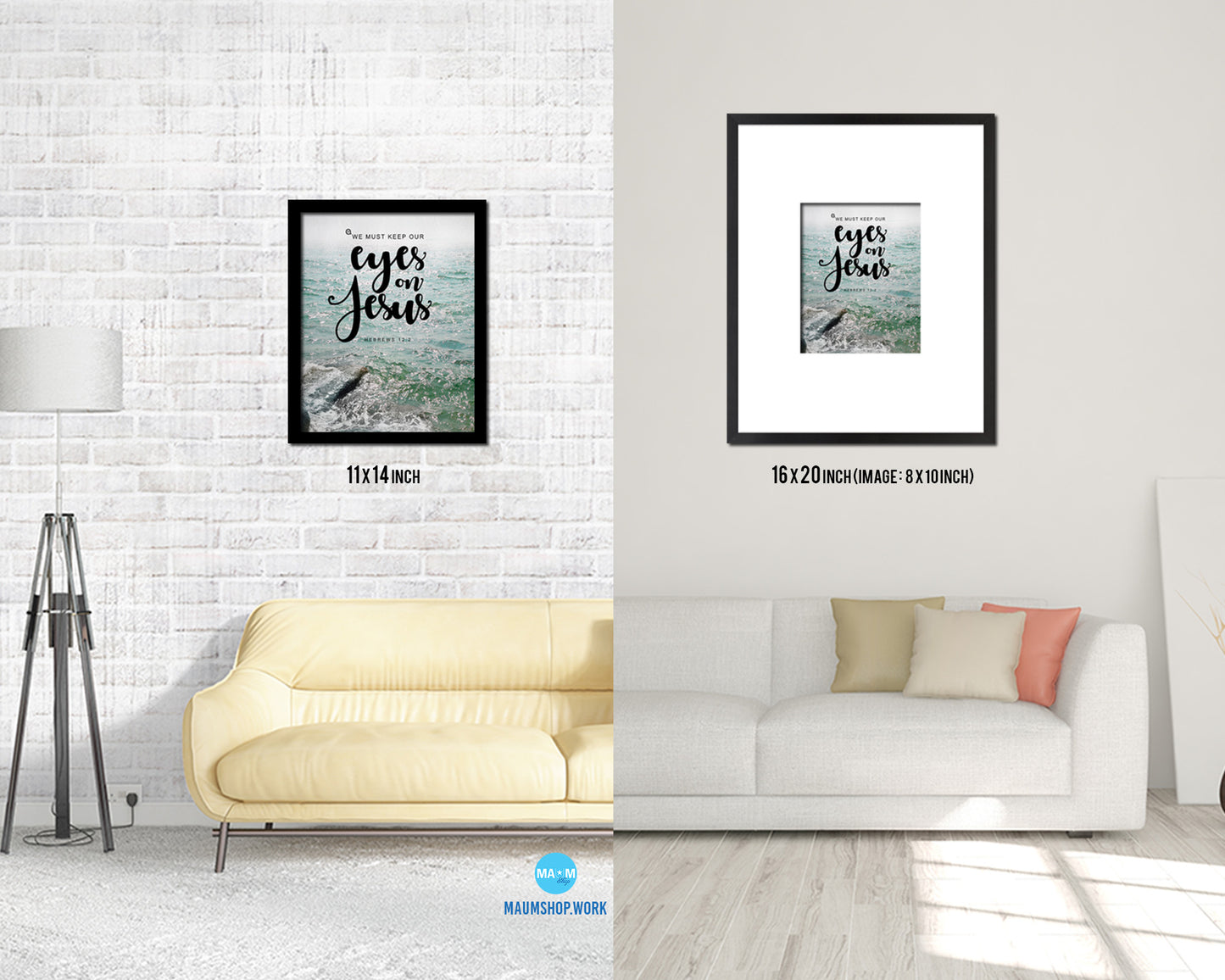 We must keep our eyes on Jesus, Hebrews 12:2 Bible Verse Scripture Frame Print