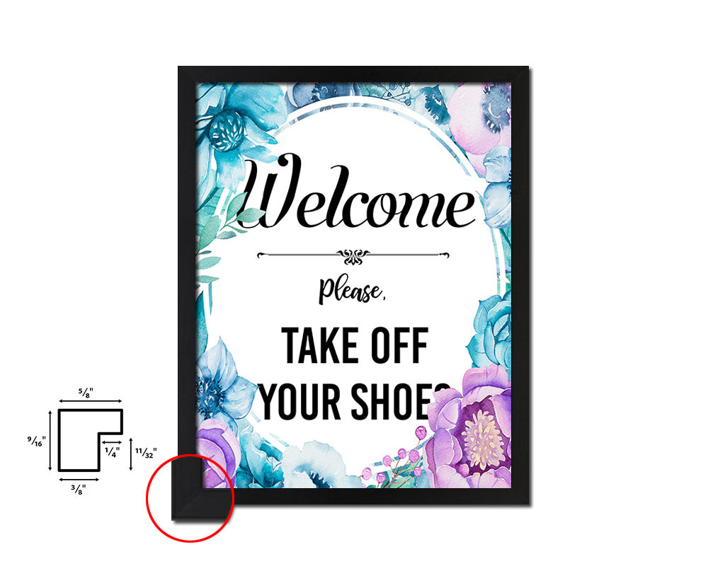 Welcome please take off your shoes Quote Boho Flower Framed Print Wall Decor Art