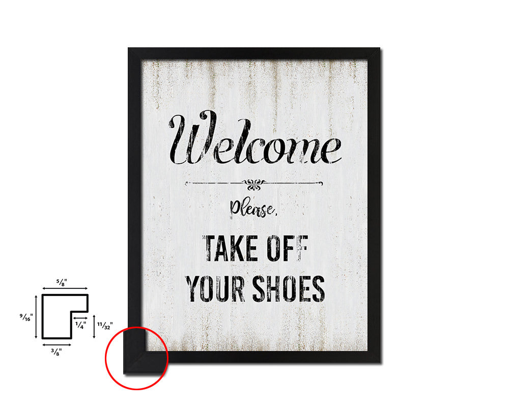 Welcome please take off your shoes Quote Wood Framed Print Wall Decor Art