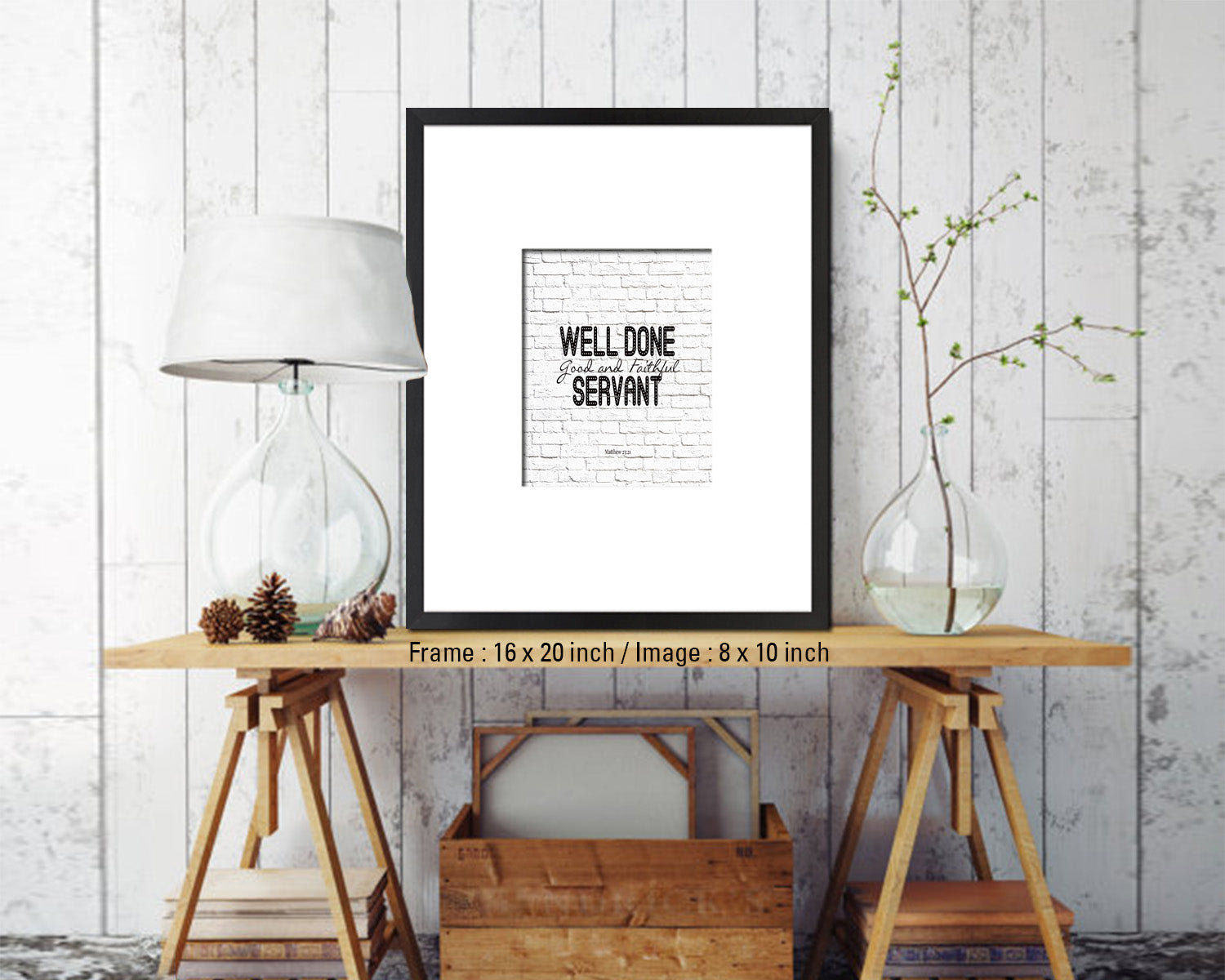Well Done Good & Faithful Servant, Matthew 25:21 Quote Framed Print Home Decor Wall Art Gifts
