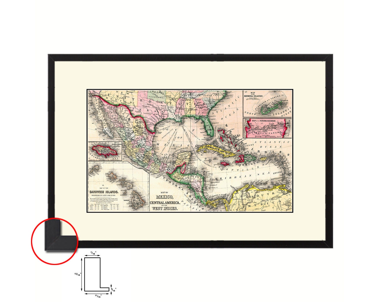 West Indies Caribbean 1870 Old Map Framed Print Art Wall Decor Gifts