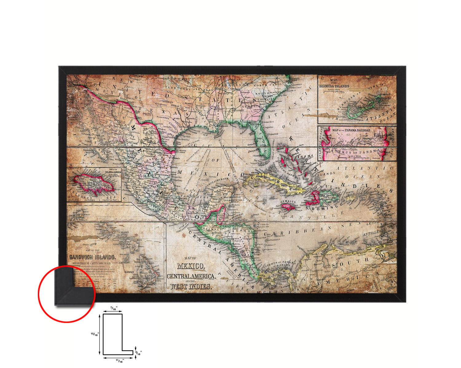 West Indies Caribbean 1870 Antique Map Framed Print Art Wall Decor Gifts