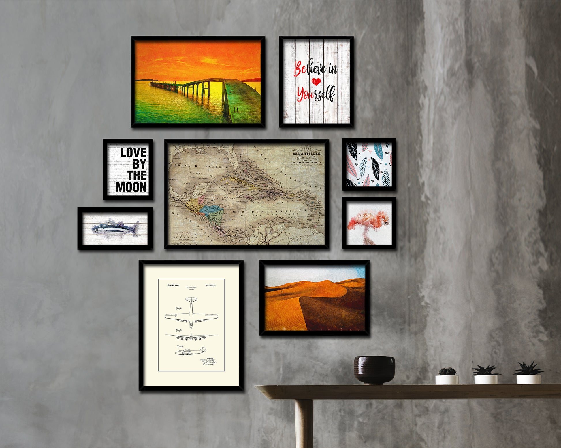 West Indies Caribbean 1870 Historical Map Framed Print Art Wall Decor Gifts