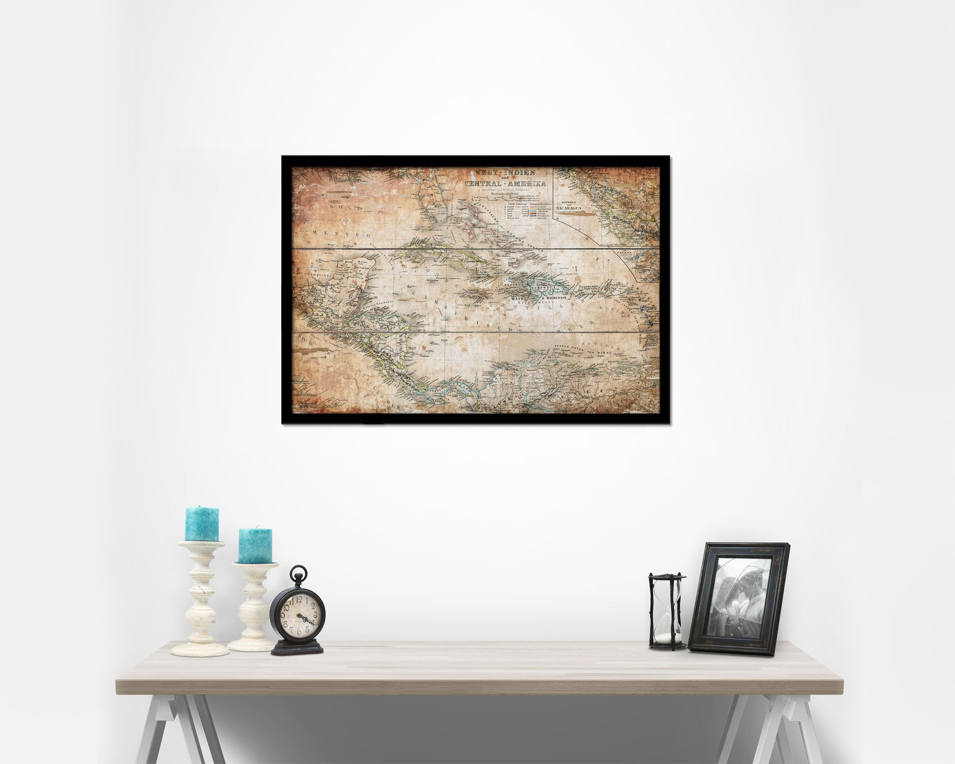 West Indies Antique Map Framed Print Art Wall Decor Gifts