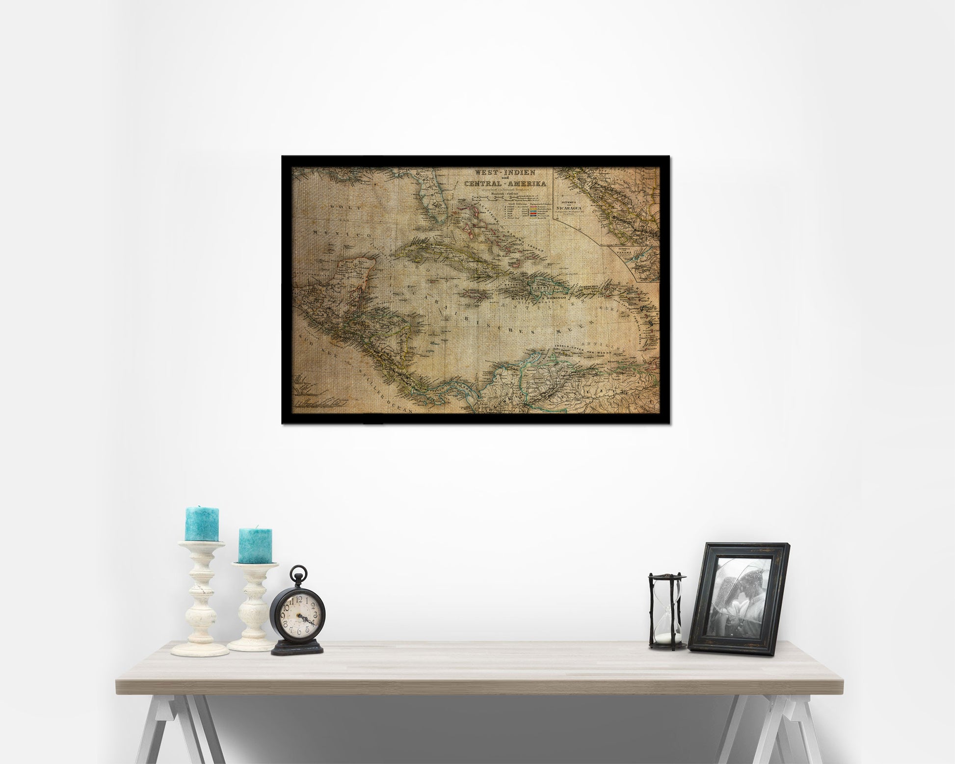West Indies Vintage Map Framed Print Art Wall Decor Gifts