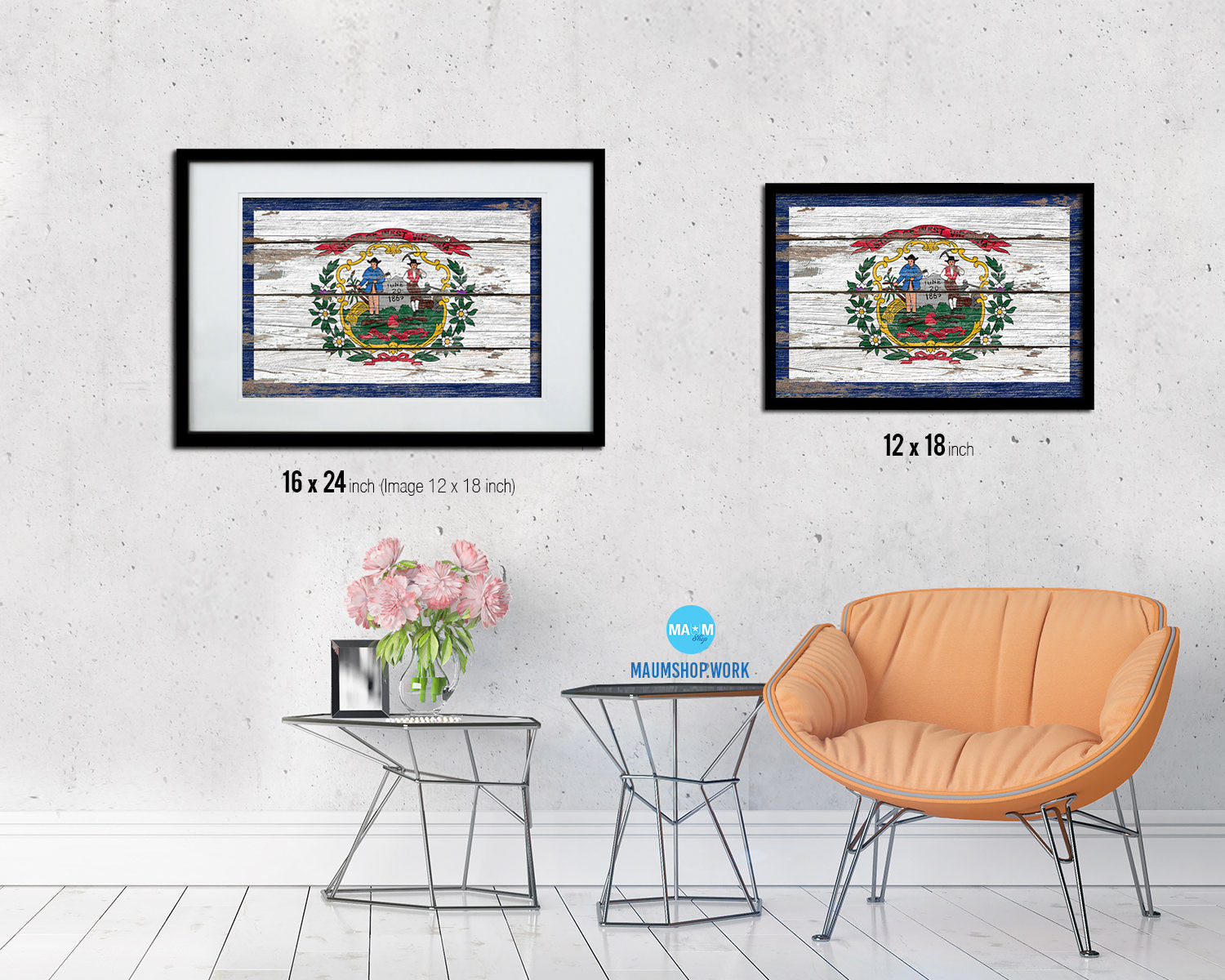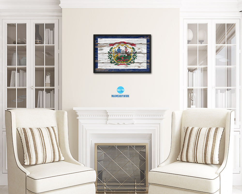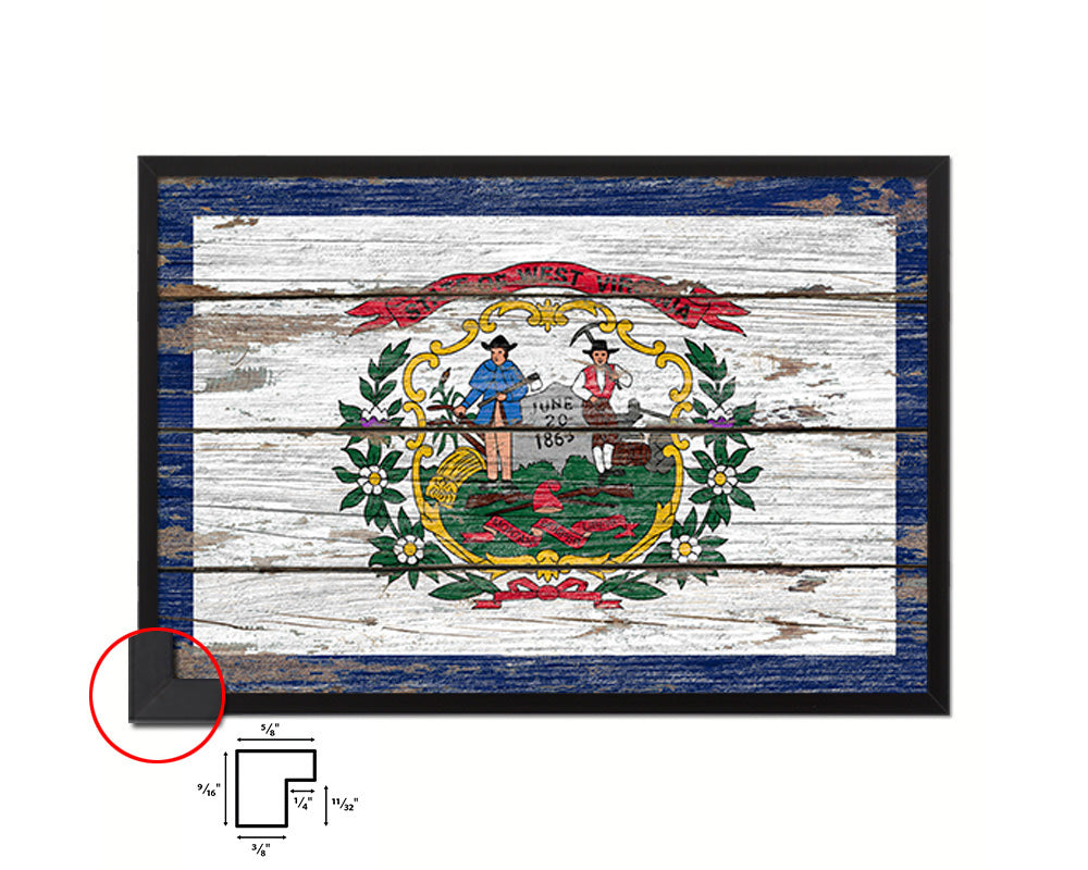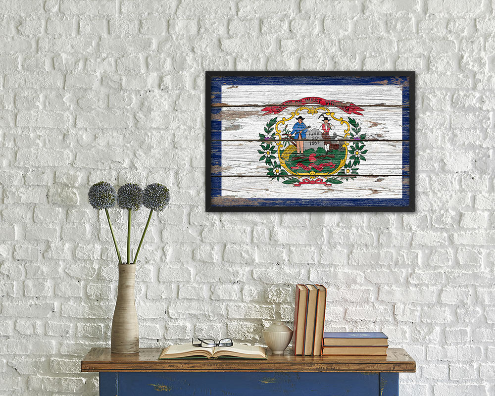 West Virginia State Rustic Flag Wood Framed Paper Prints Wall Art Decor Gifts