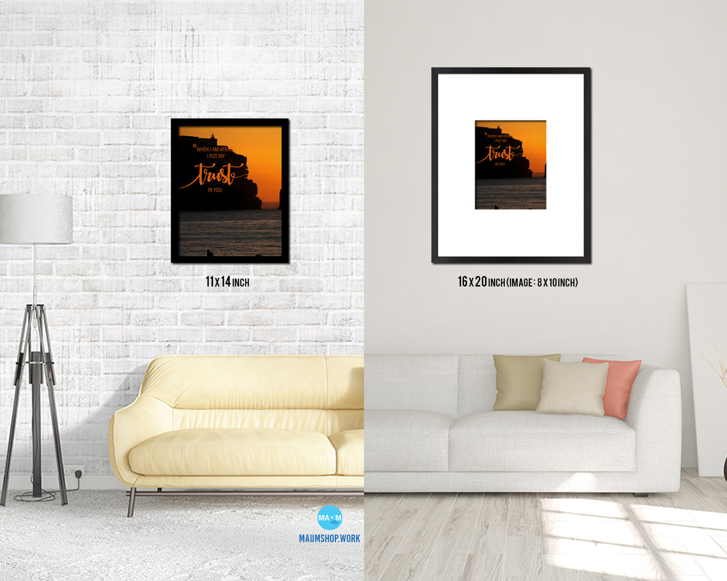 When I am afraid I put my trust in you Bible Verse Scripture Framed Print Wall Decor Art Gifts