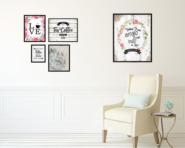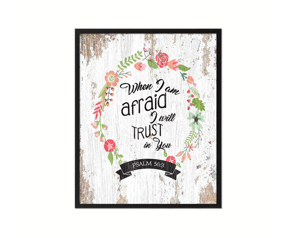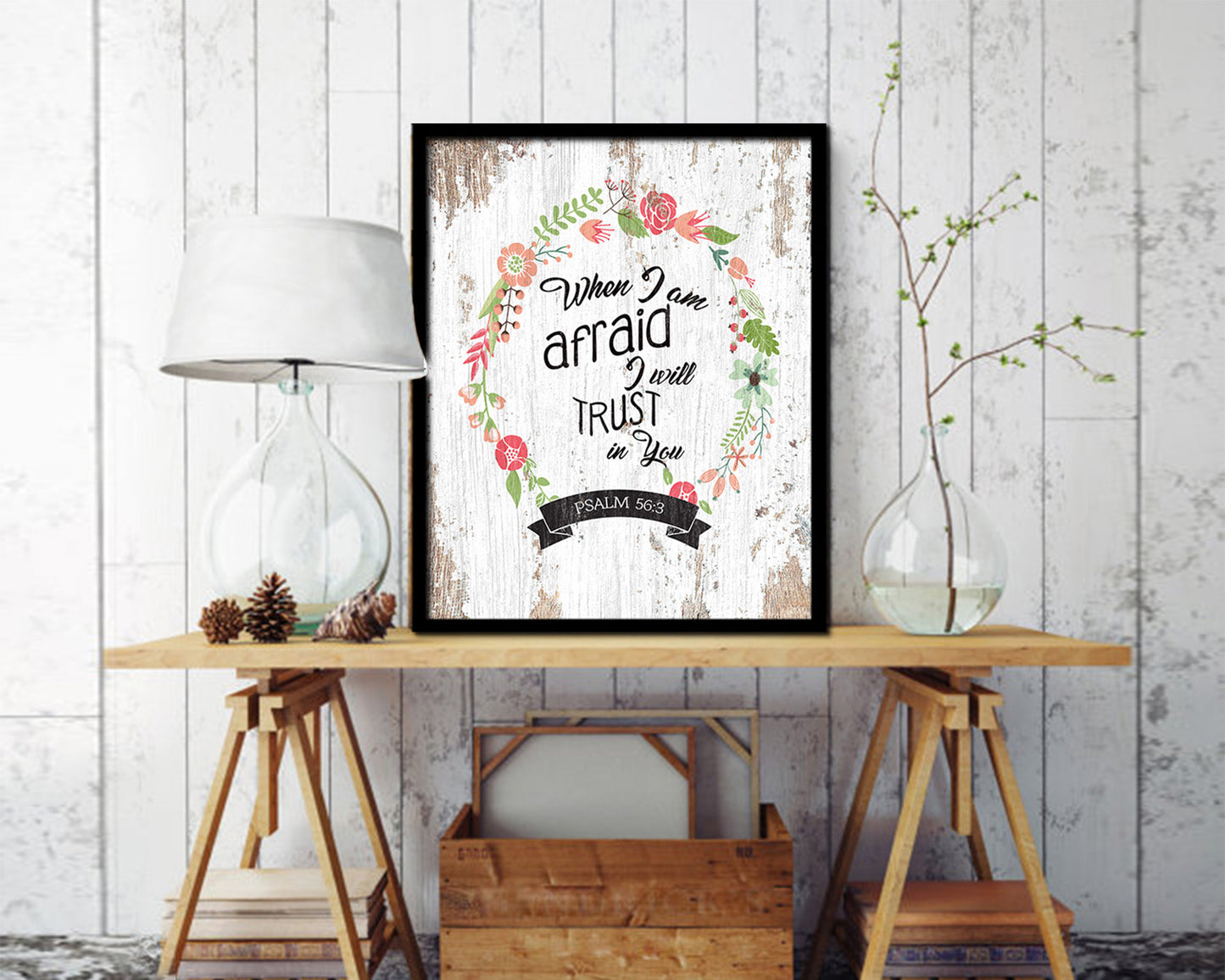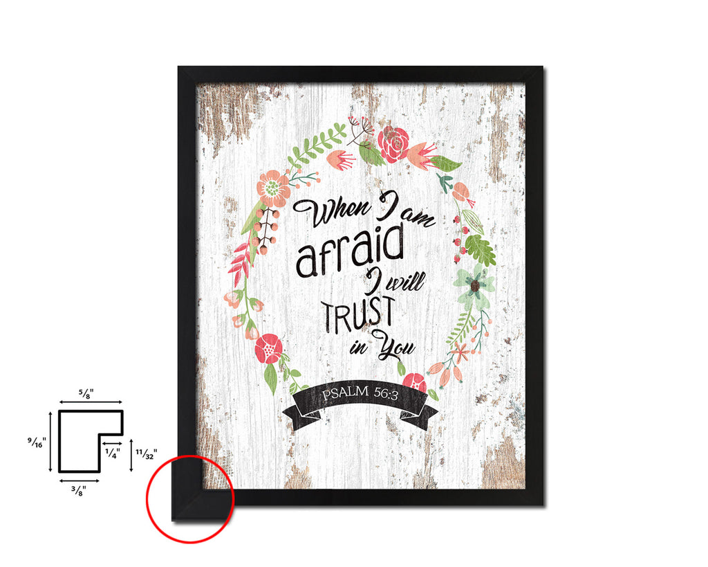 When I am afraid I will trust in you, Psalm 56:3 Quote Framed Print Home Decor Wall Art Gifts