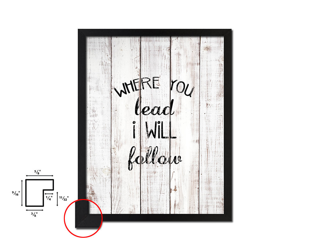 Where you lead I will follow White Wash Quote Framed Print Wall Decor Art