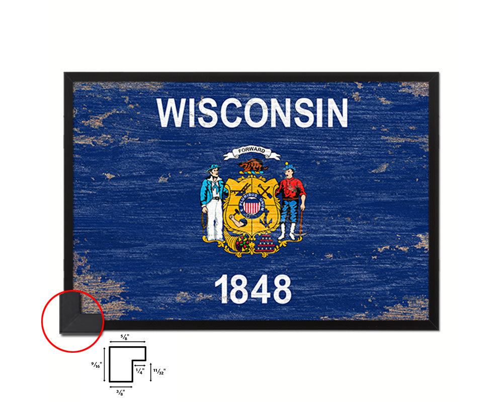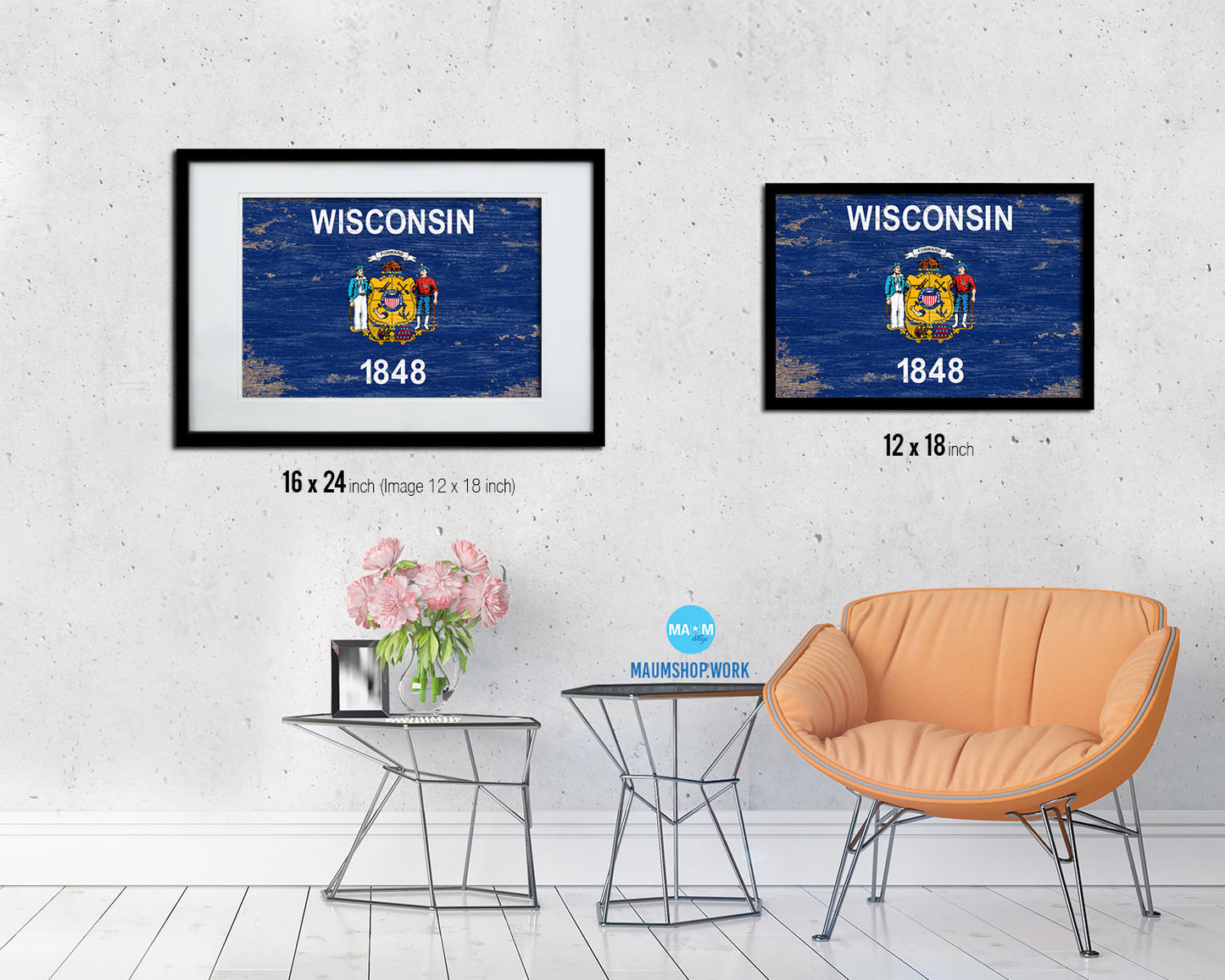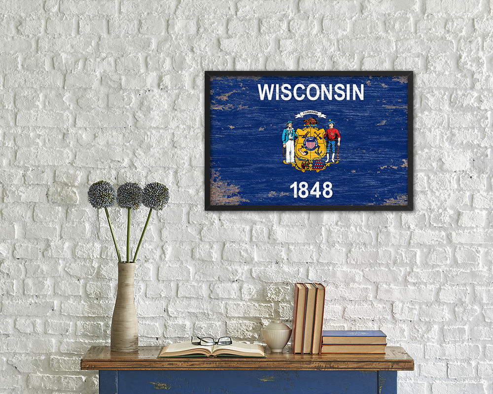 Wisconsin State Shabby Chic Flag Wood Framed Paper Print Wall Art Decor Gifts