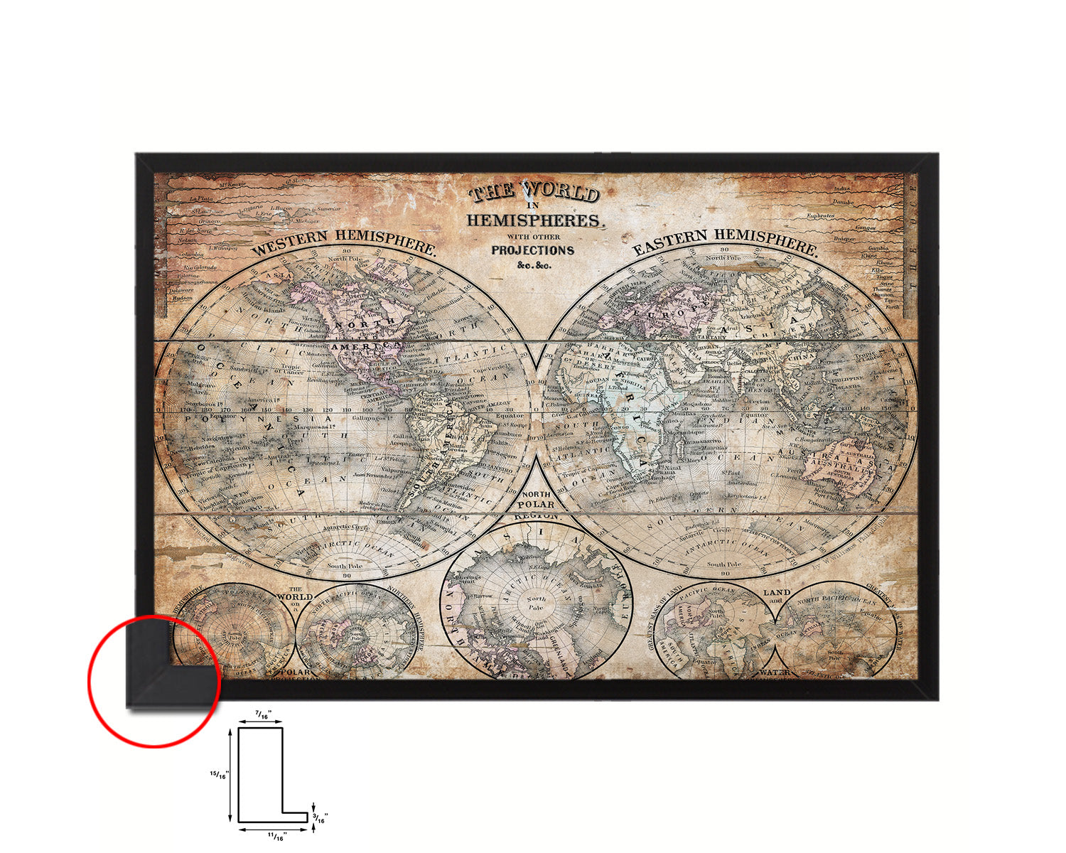 World Hemispheres 1870 Antique Map Framed Print Art Wall Decor Gifts