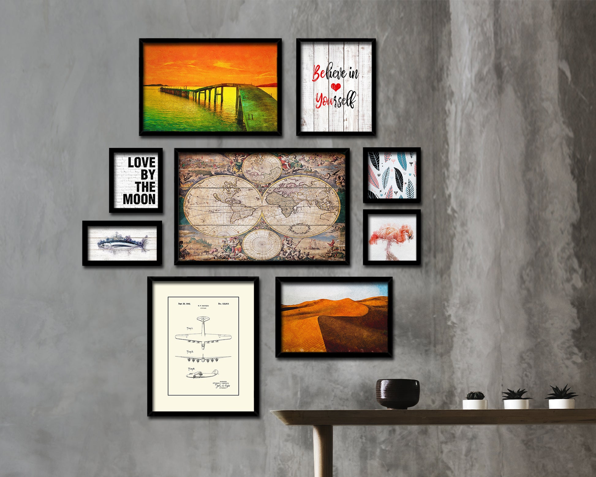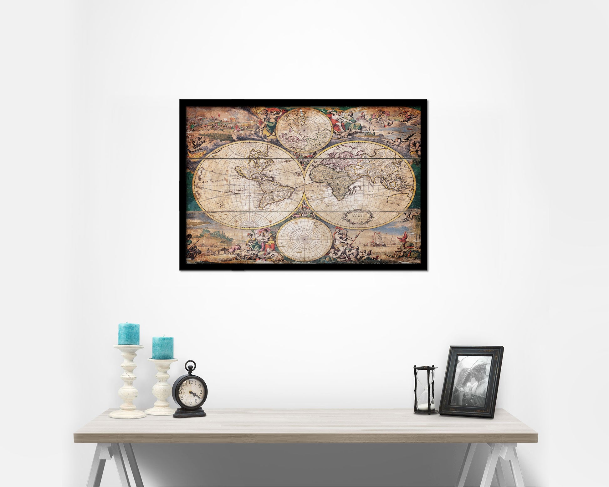 World hemispheres Frederick De Wit Amsterdam 1668 Antique Map Framed Print Art Wall Decor Gifts
