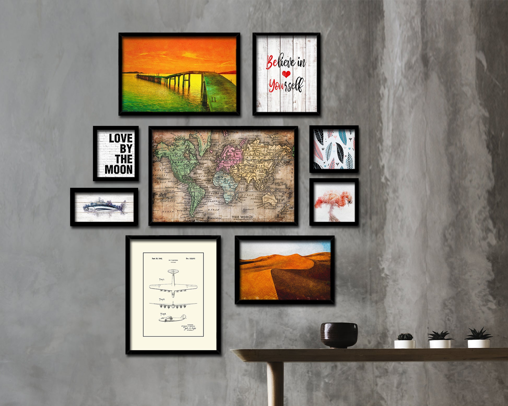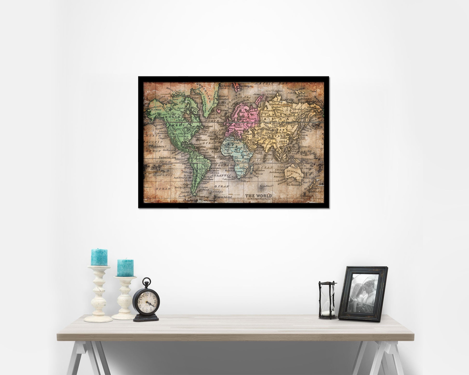 World Mercator Projection Circa 1860 Antique Map Framed Print Art Wall Decor Gifts