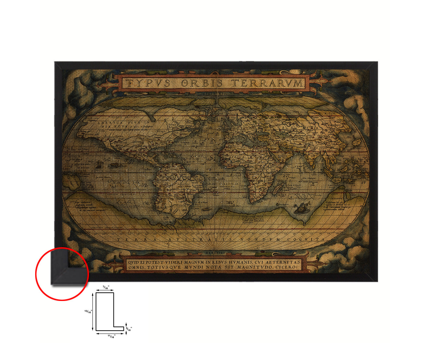 World Ortelius Circa Vintage Map Framed Print Art Wall Decor Gifts