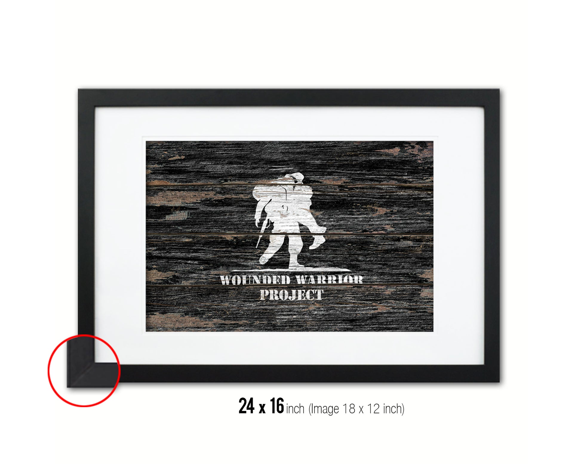 Wounded Warrior Project Wood Rustic Flag Wood Framed Print Wall Art Decor Gifts