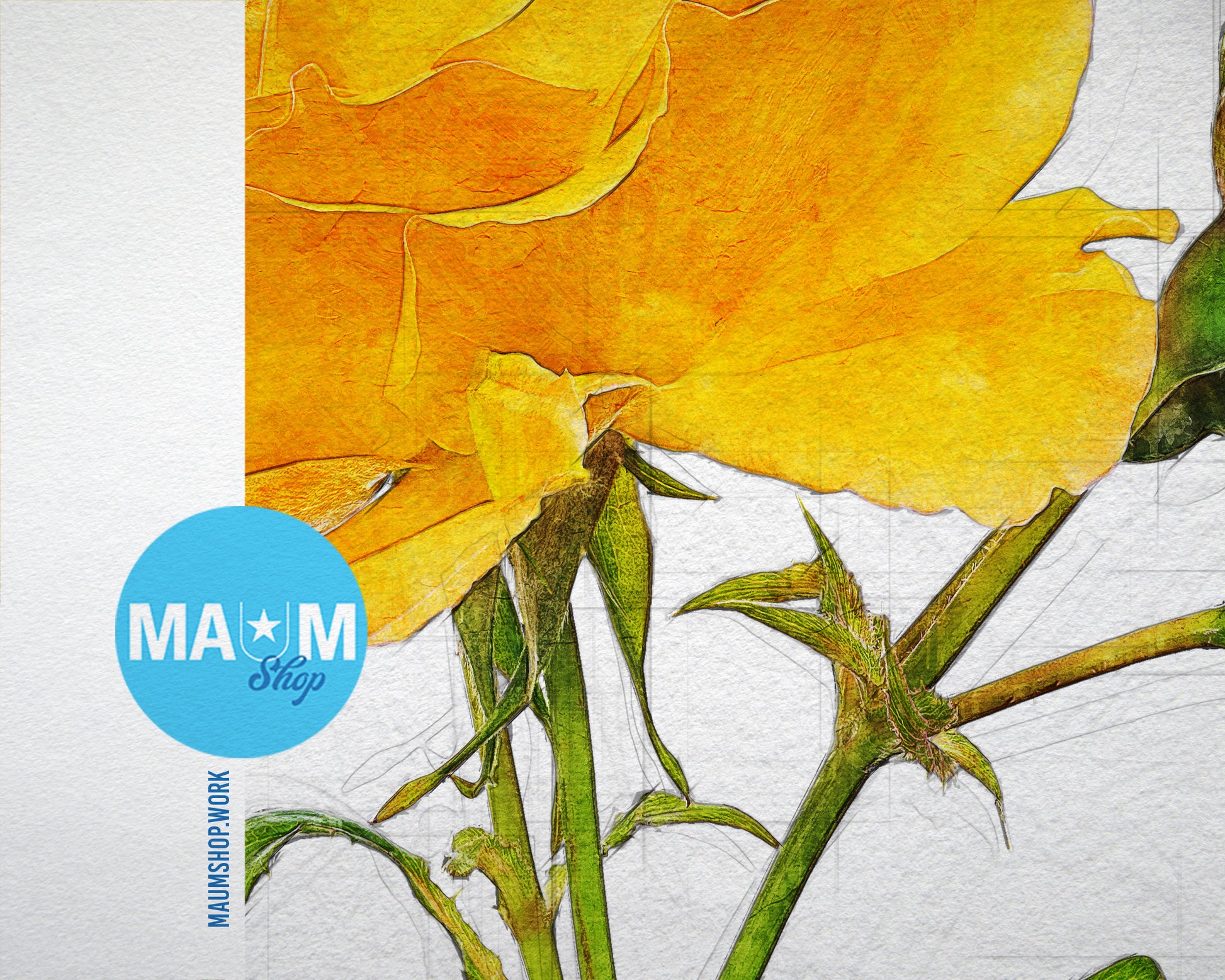 Yellow Rose Sketch Plants Art Wood Framed Print Wall Decor Gifts