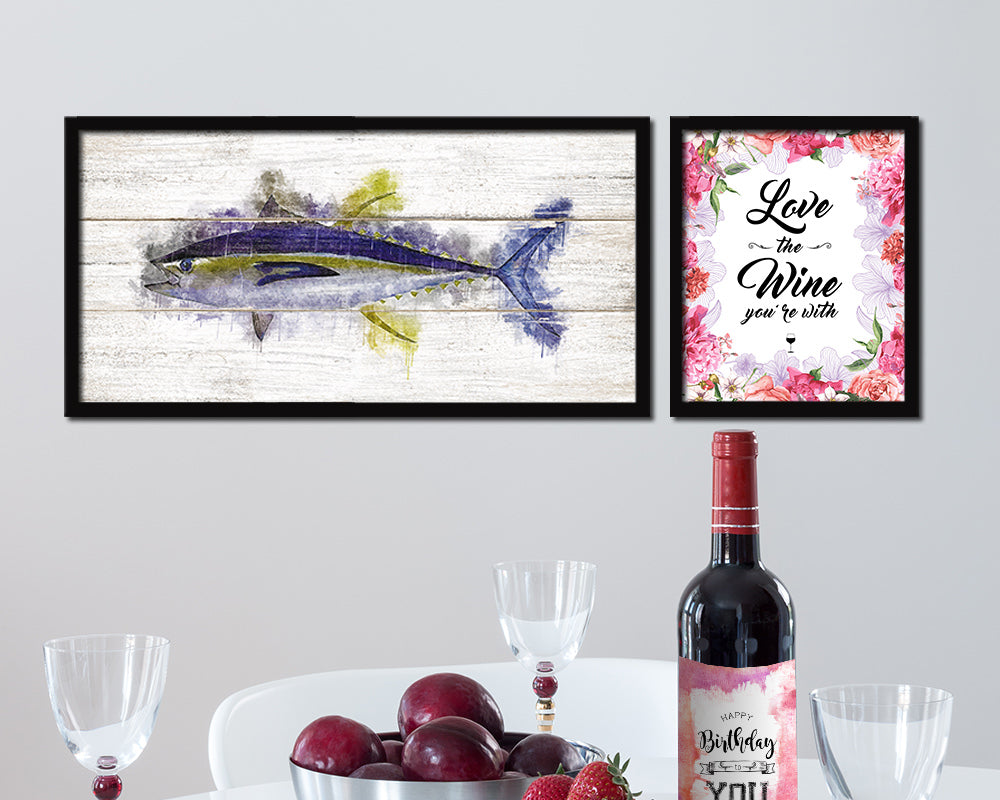 Yellowfin Fish Art Wood Framed White Wash Restaurant Sushi Wall Decor Gifts, 10" x 20"