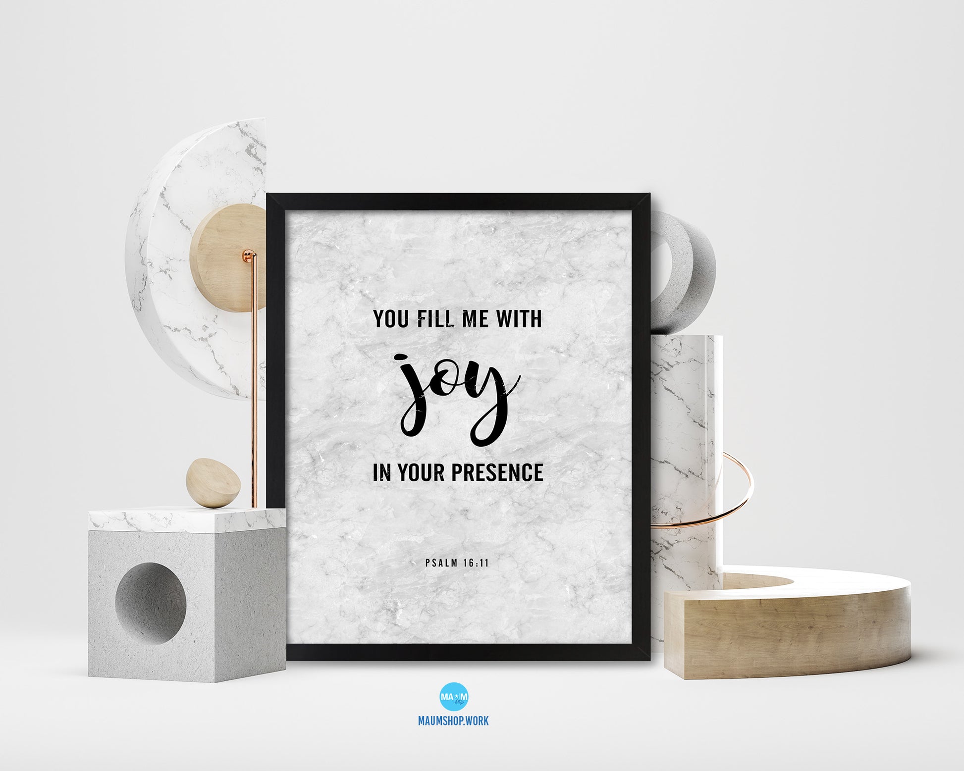 You fill me with joy in your presence, Psalm 16:11 Bible Scripture Verse Framed Art