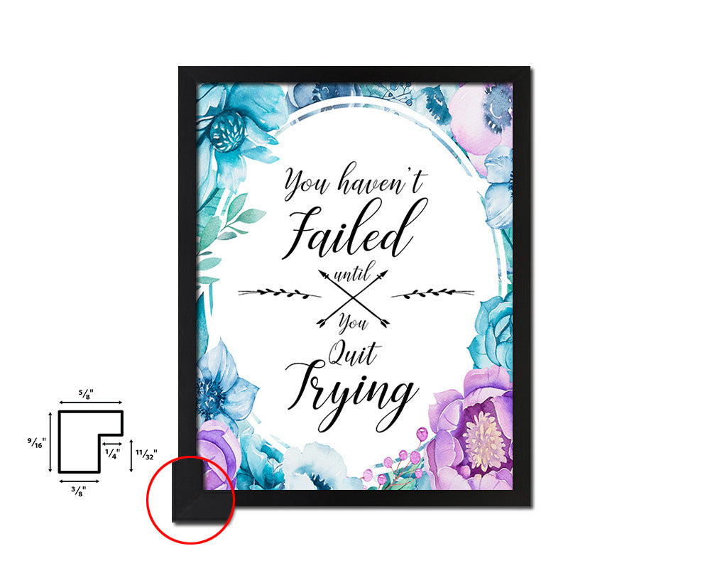 You haven't failed until you quit trying Quote Boho Flower Framed Print Wall Decor Art